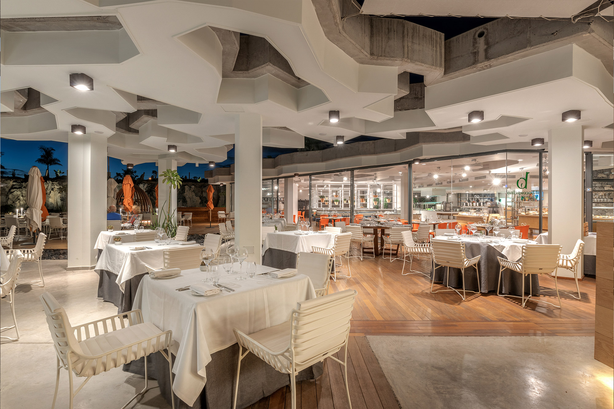 A unified culinary concept offered in two spaces. The main restaurant serves Mediterranean and grilled dishes with fresh fish and seafood, while the poolside service offers lighter meals, bowls, salads and snacks throughout the day.