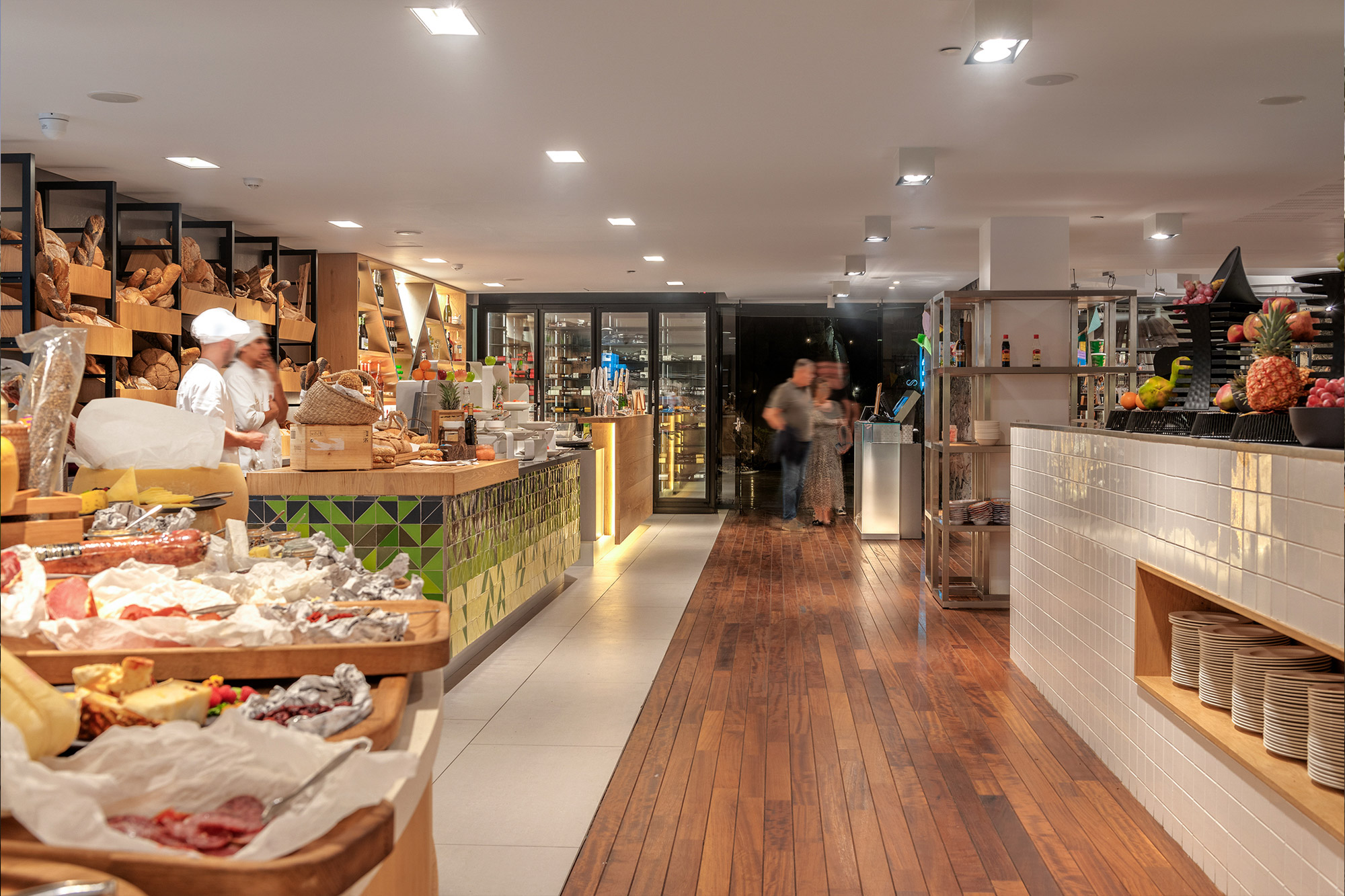 A bright Mediterranean buffet offering breakfast and dinner with salads, warm dishes, desserts and live cooking stations.