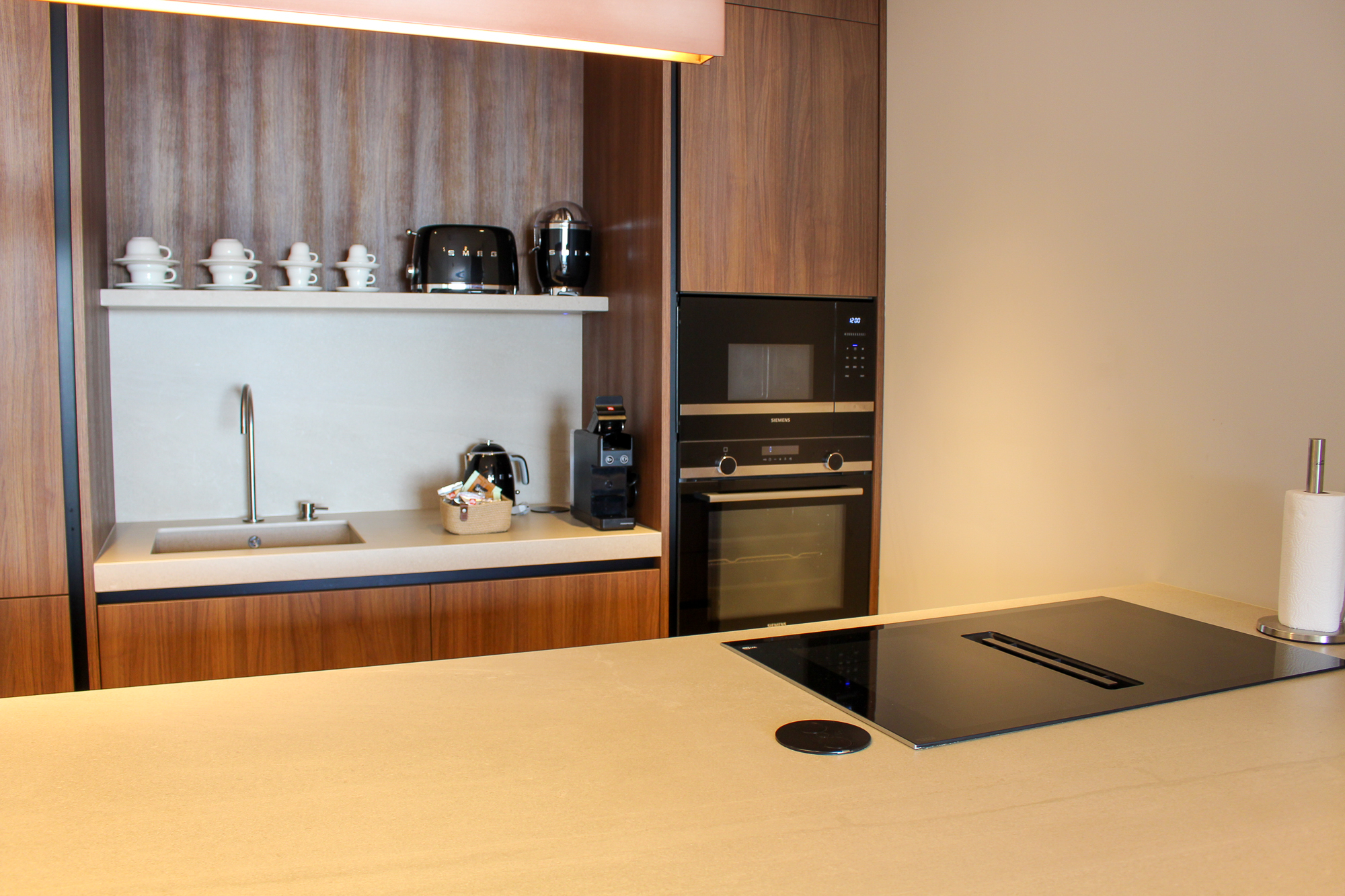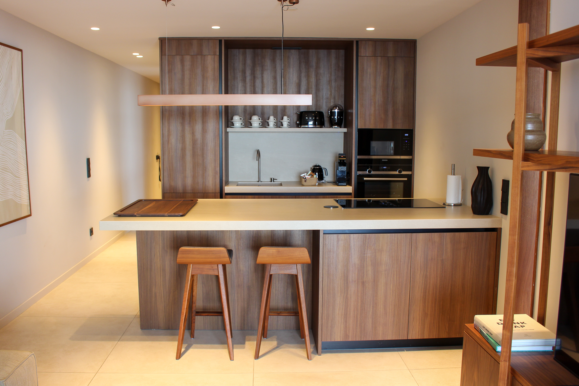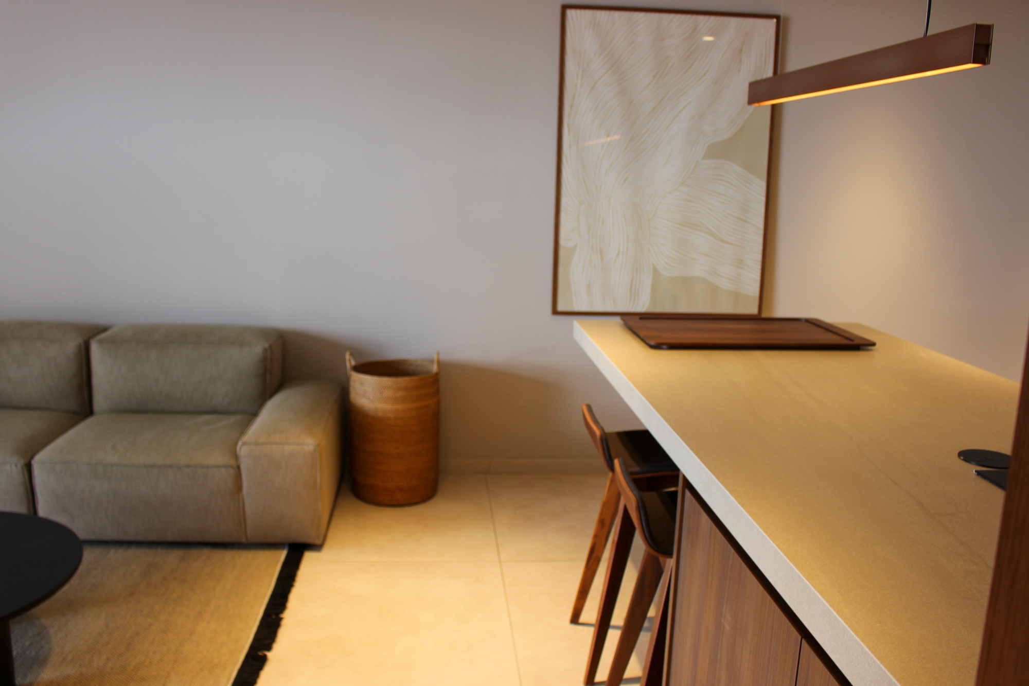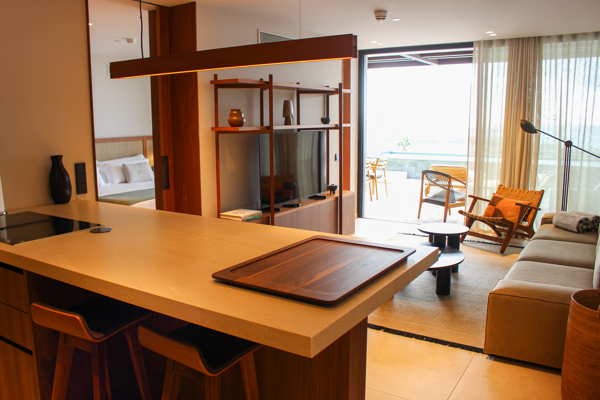 En el interior, la distribución fluye con total naturalidad. El luminoso salón se conecta con una moderna cocina con una elegante isla, el lugar ideal para preparar una comida mientras la suave brisa subtropical recorre la casa. Cada elemento refleja confort refinado y artesanía de alta calidad, con acabados premium y materiales naturales que aportan calidez y equilibrio al espacio.