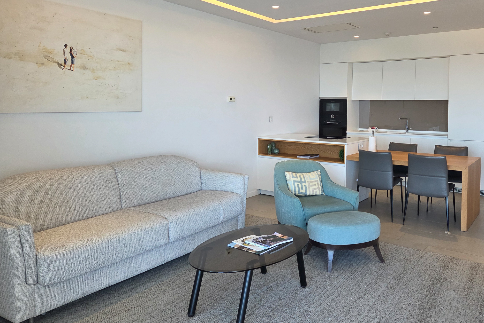 Doorheen het appartement zorgen hoogwaardige materialen, zachte neutrale tinten en warme sfeerverlichting voor een elegante en ontspannen uitstraling. Onafhankelijke airconditioning in elke ruimte garandeert optimaal comfort gedurende het hele jaar.