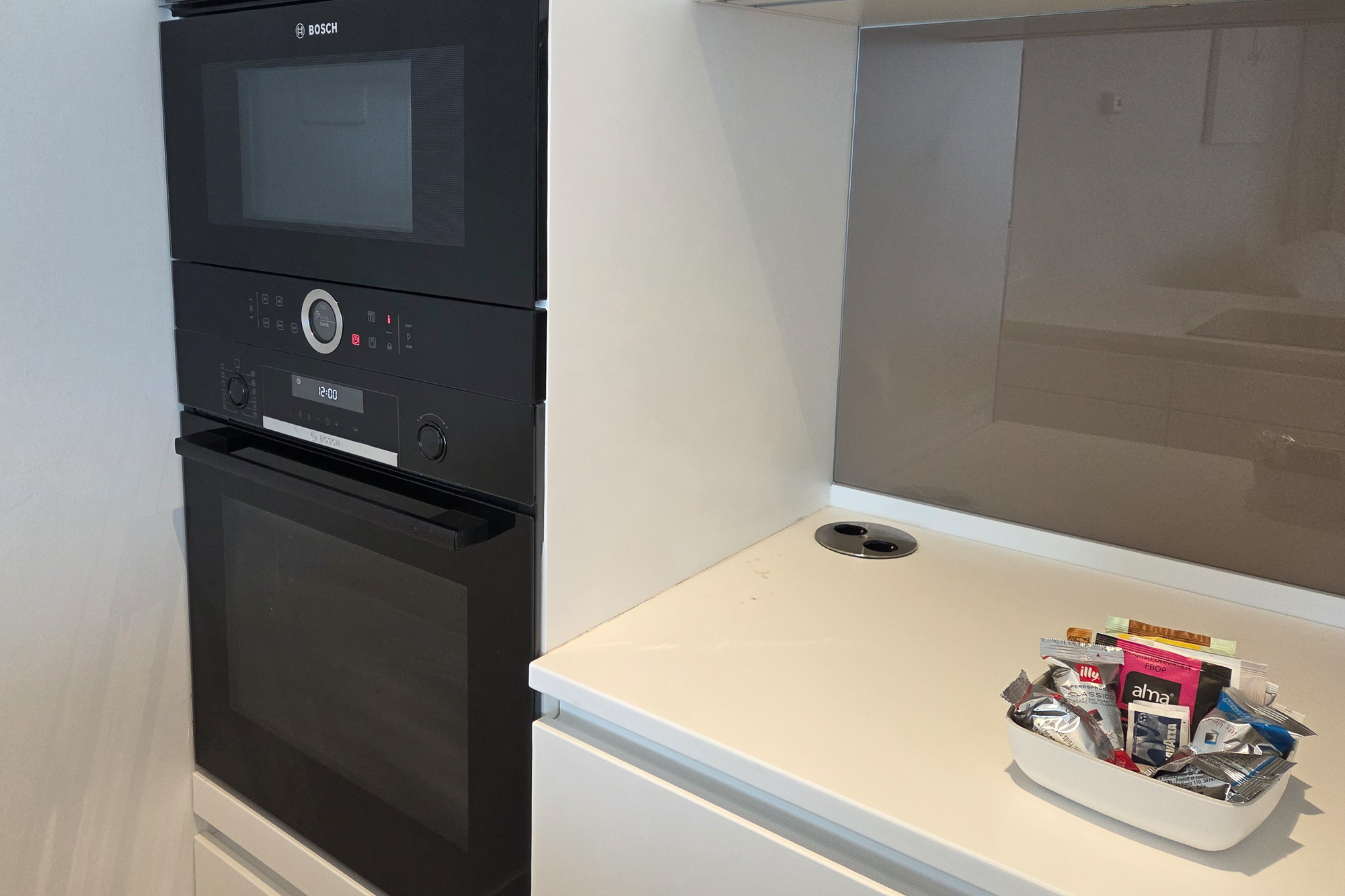 Bij binnenkomst leidt een uitnodigende hal naar een lichte open leefruimte waar de woonkamer, eetruimte en moderne volledig uitgeruste keuken naadloos in elkaar overlopen. De keuken is ontworpen met strakke lijnen en hoogwaardige apparatuur, terwijl de eethoek comfortabel plaats biedt aan vier personen, ideaal voor zowel dagelijks gebruik als het ontvangen van gasten.