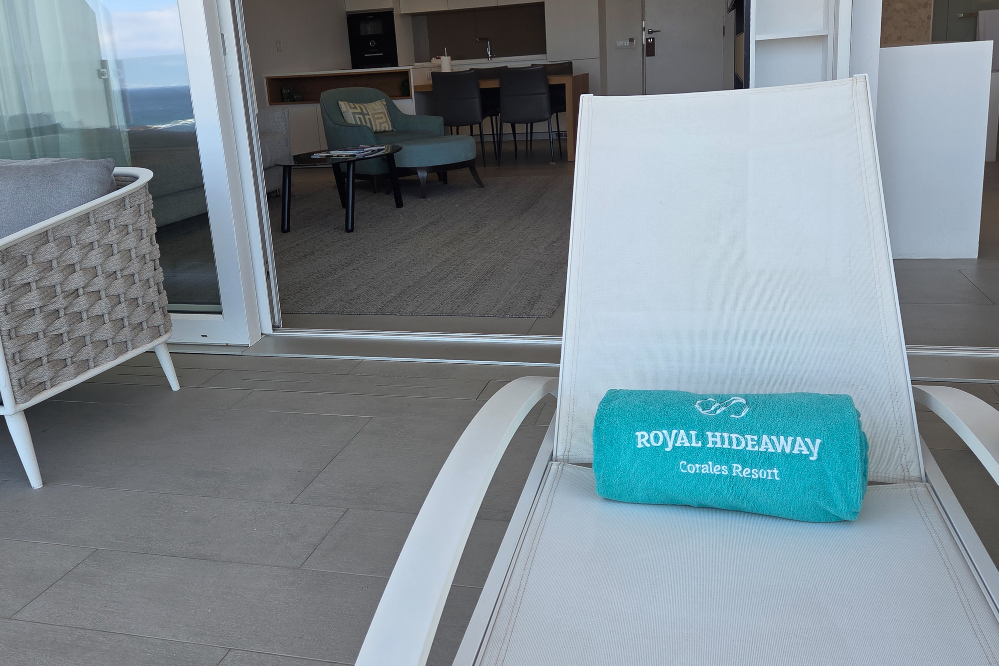 Gelegen op de 5e verdieping van het prestigieuze 5★ GL resort Royal Hideaway Corales Suites, biedt dit elegante 1-slaapkamer appartement een verfijnde combinatie van modern design, comfort en prachtig zeezicht.