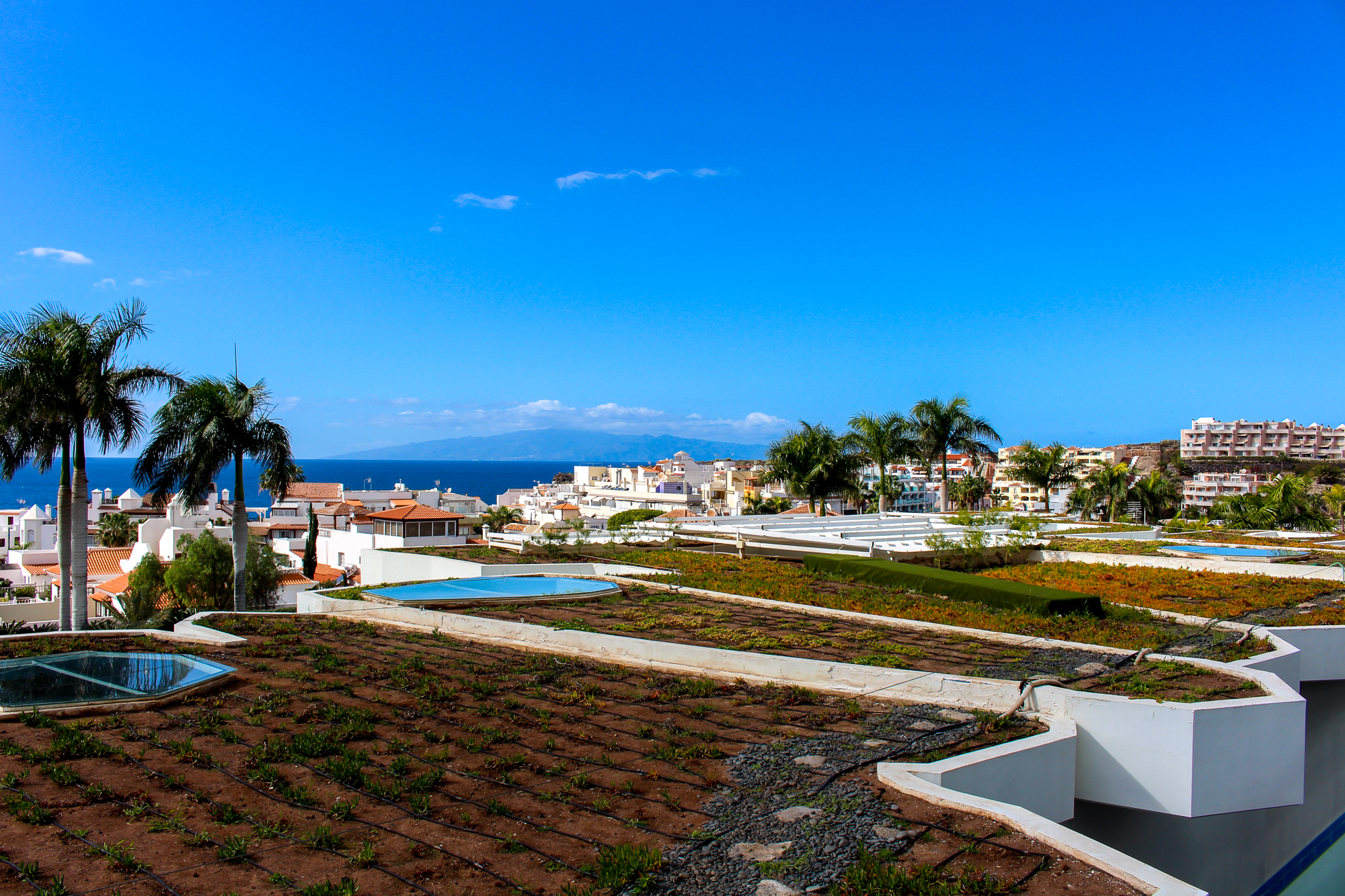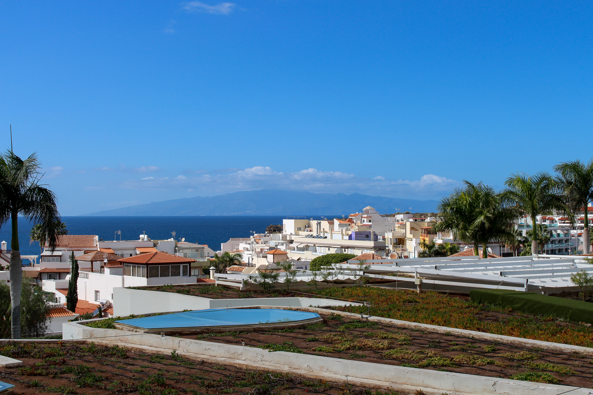 Buiten vind je een zonnig terras met een adembenemend frontaal uitzicht op La Caleta en de uitgestrekte oceaan, wat het geheel perfect maakt.