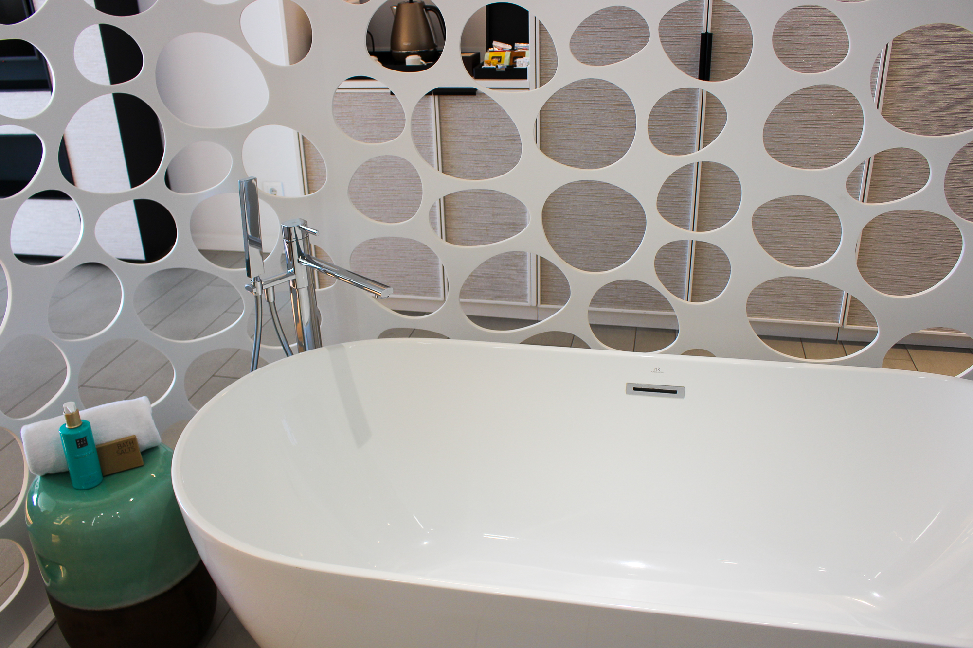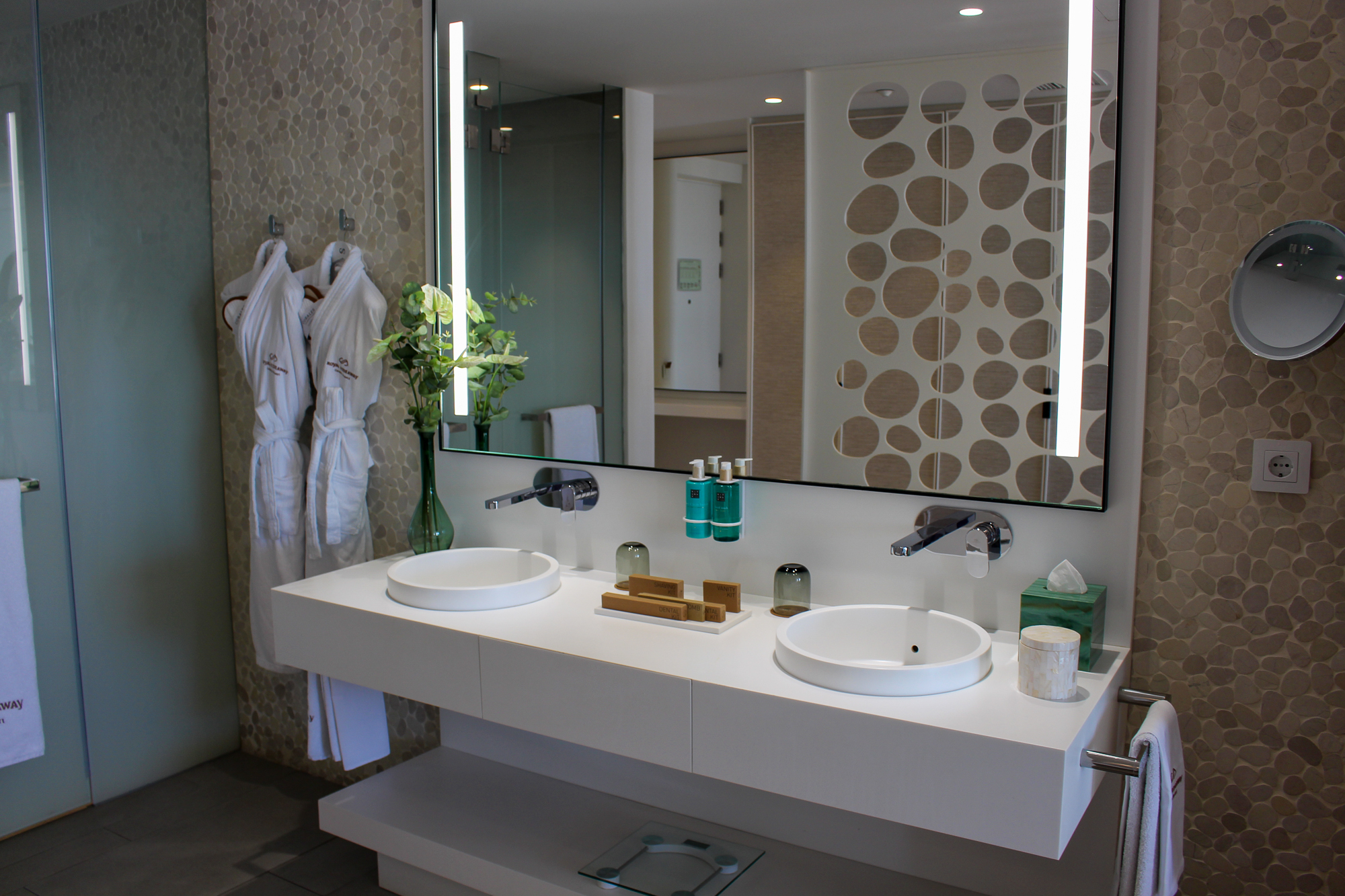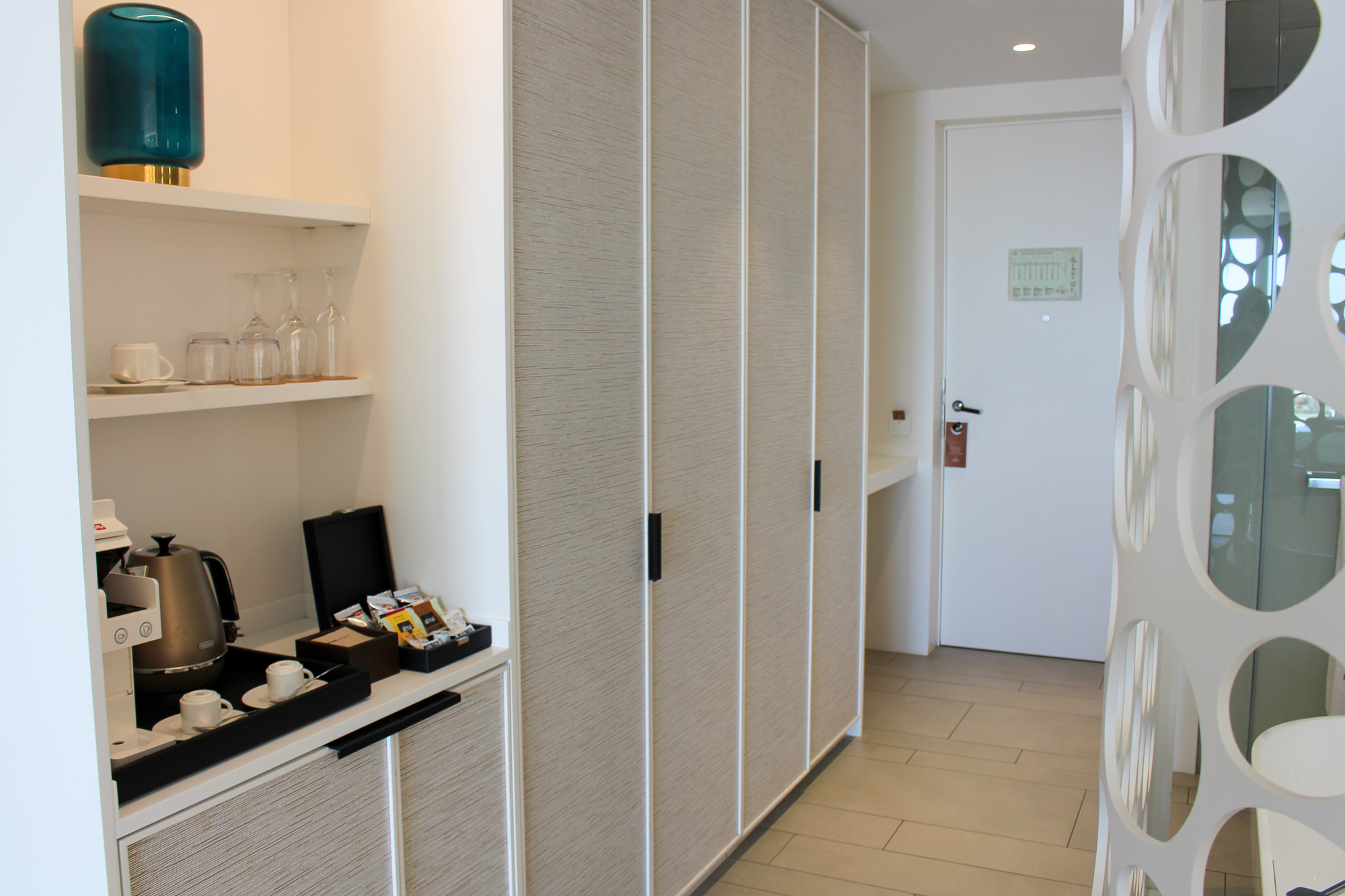 Alle gebruikte materialen en meubels zijn van uitzonderlijk hoge kwaliteit; de suite is licht en de sfeerverlichting zorgt ’s avonds voor een warme, gezellige sfeer.