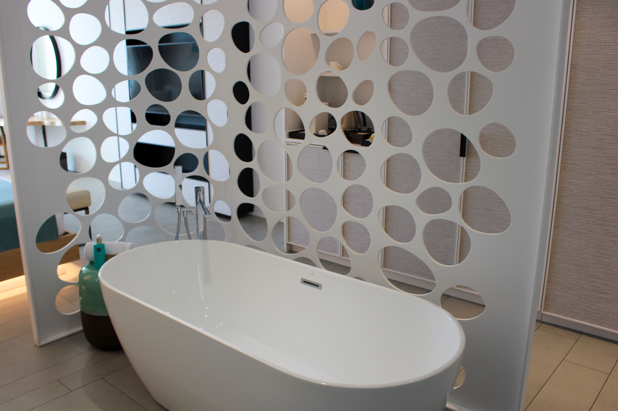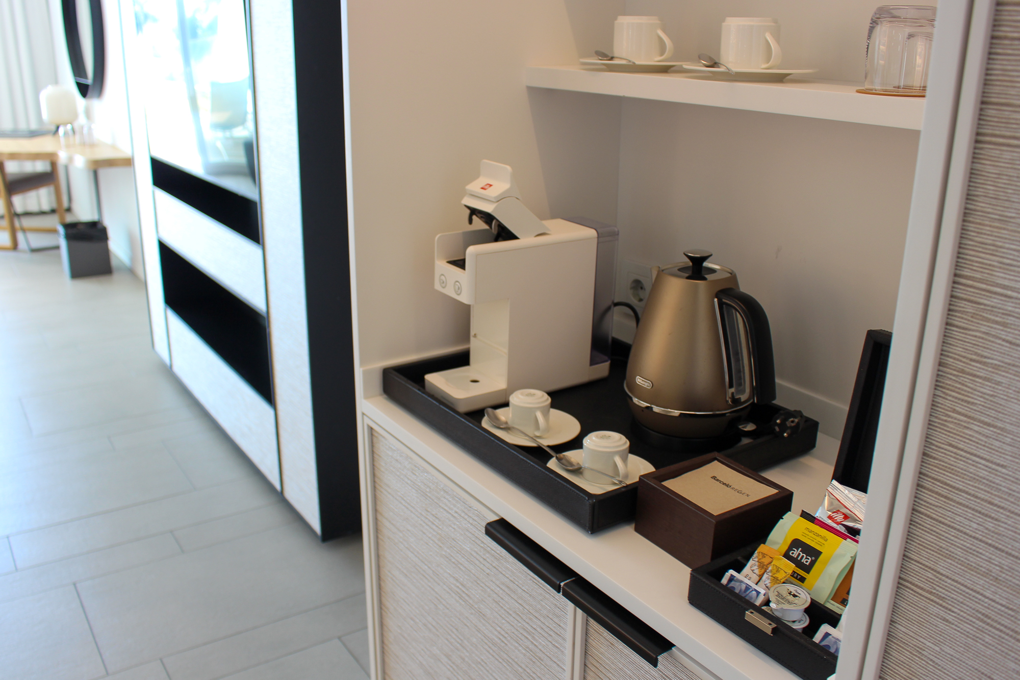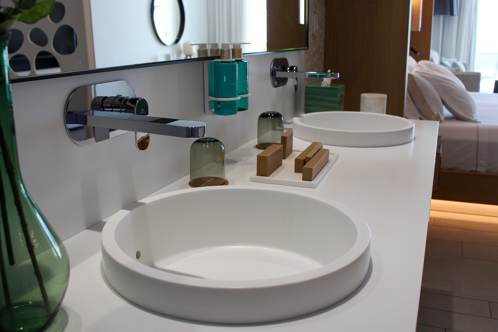 Alle gebruikte materialen en meubels zijn van uitzonderlijk hoge kwaliteit; de suite is licht en de sfeerverlichting zorgt ’s avonds voor een warme, gezellige sfeer.