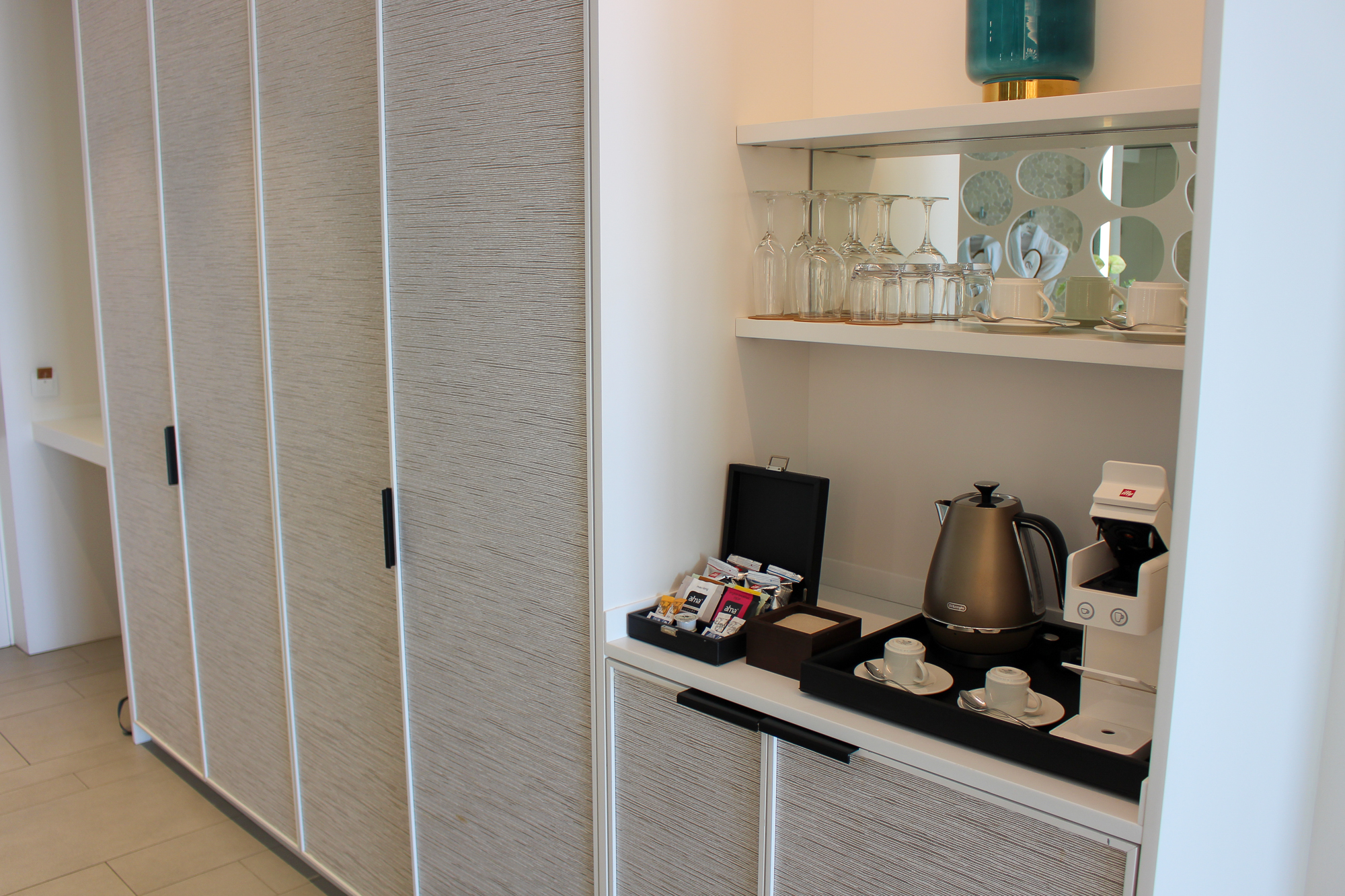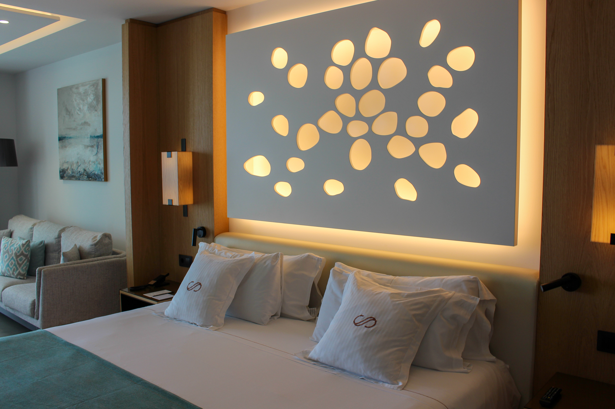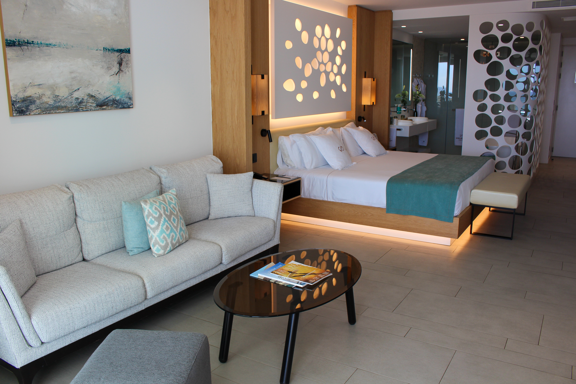 Alle gebruikte materialen en meubels zijn van uitzonderlijk hoge kwaliteit; de suite is licht en de sfeerverlichting zorgt ’s avonds voor een warme, gezellige ambiance.