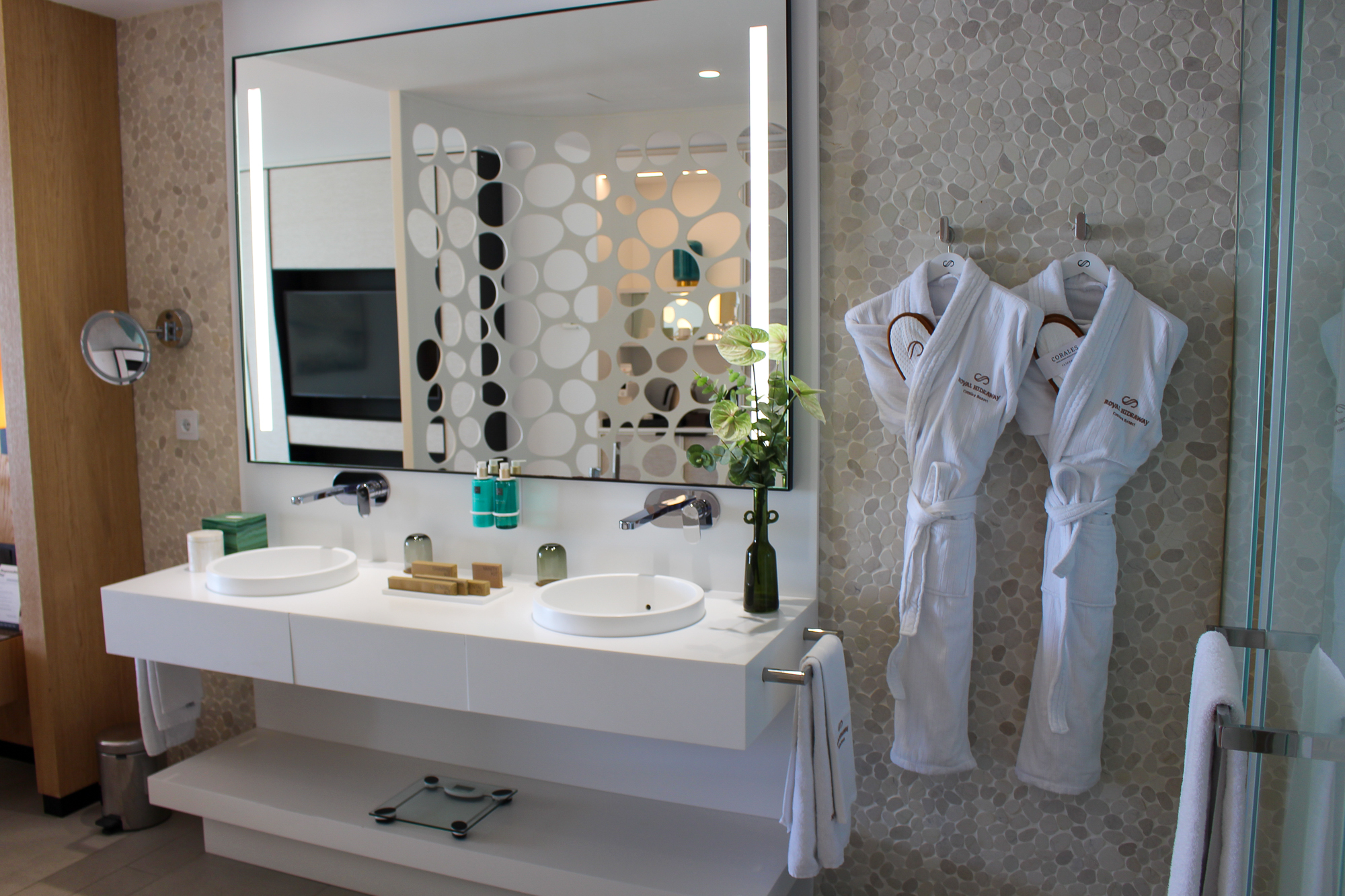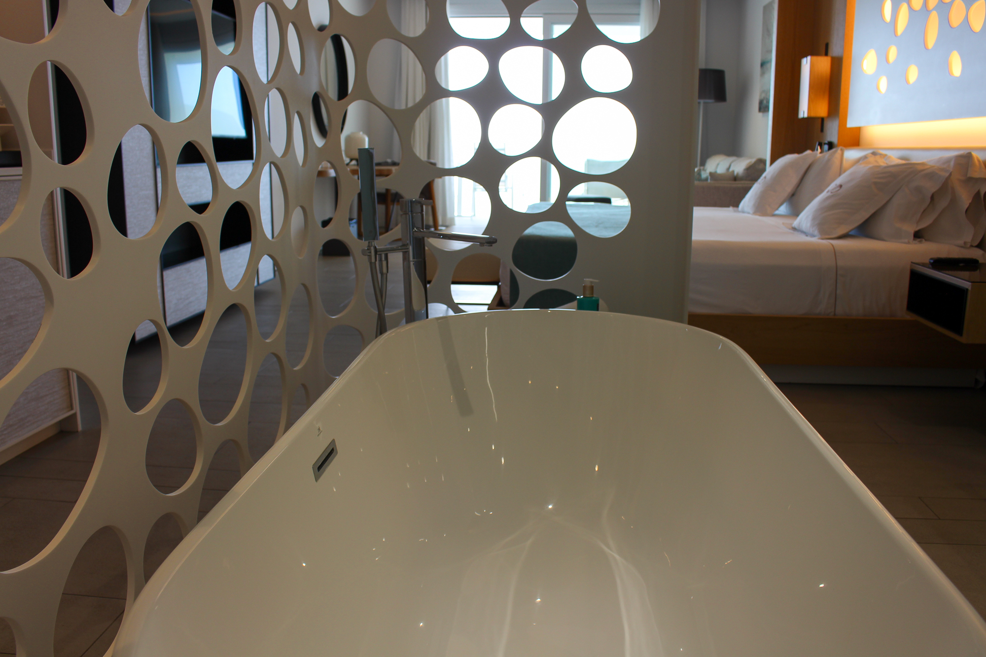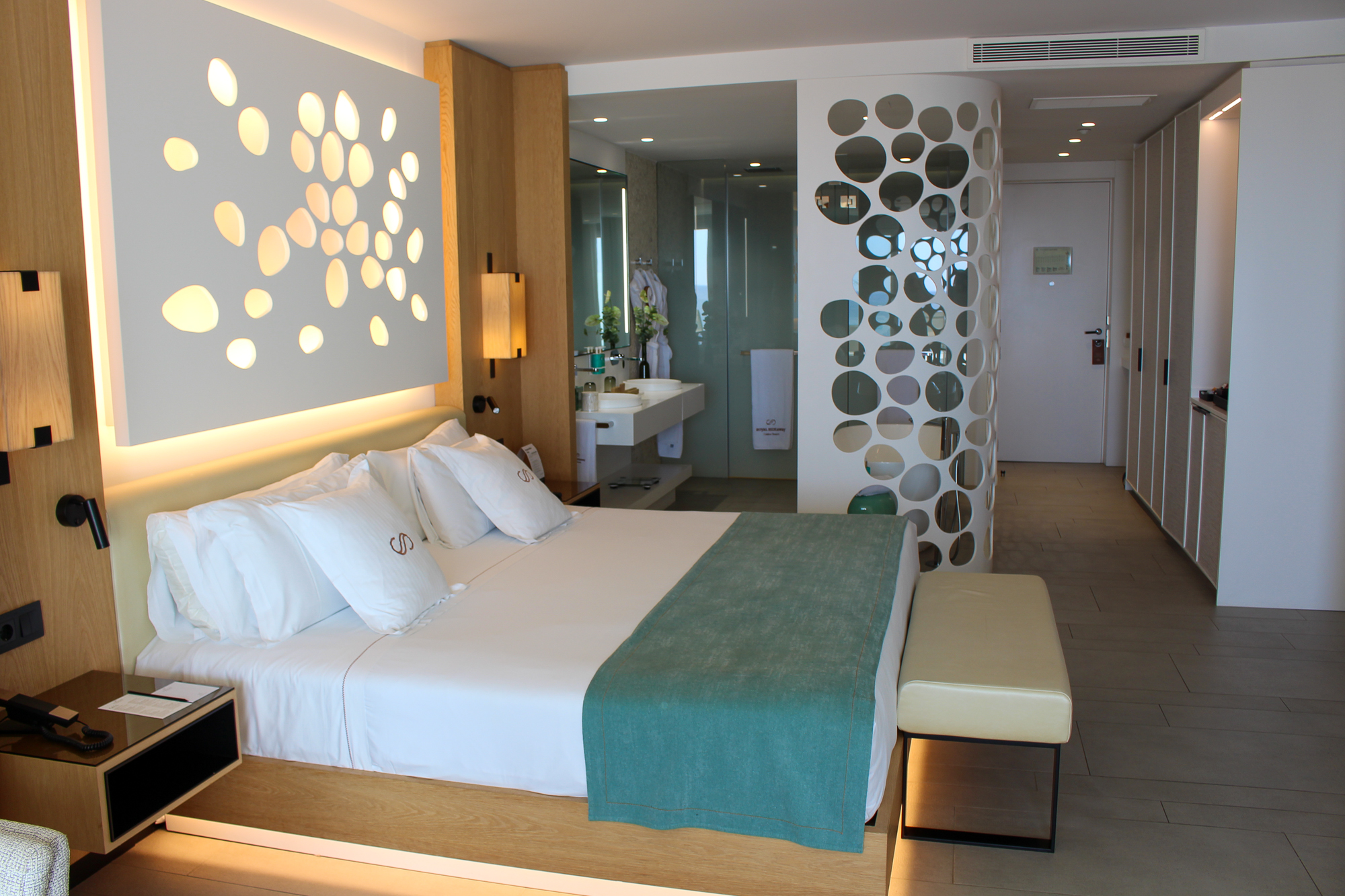 De suites beschikken over een groot verlicht KING SIZE-bed met een stijlvol ontworpen hoofdbord en een zeer moderne badkamer met dubbele wastafel en een bad van KRION. Er is een aparte regendouche en een afzonderlijk toilet. De JS is voorzien van individueel ingebouwde airconditioning.