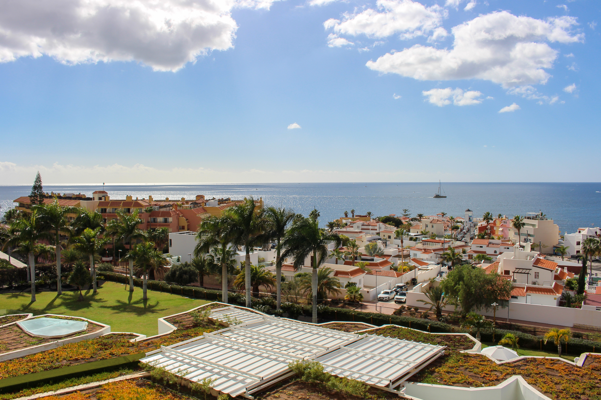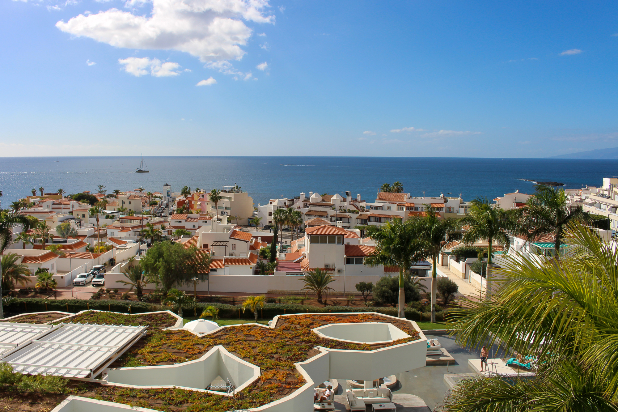 Buiten bevindt zich een zonnig terras met een adembenemend frontaal uitzicht op La Caleta en de uitgestrekte oceaan — het maakt het geheel helemaal compleet.
