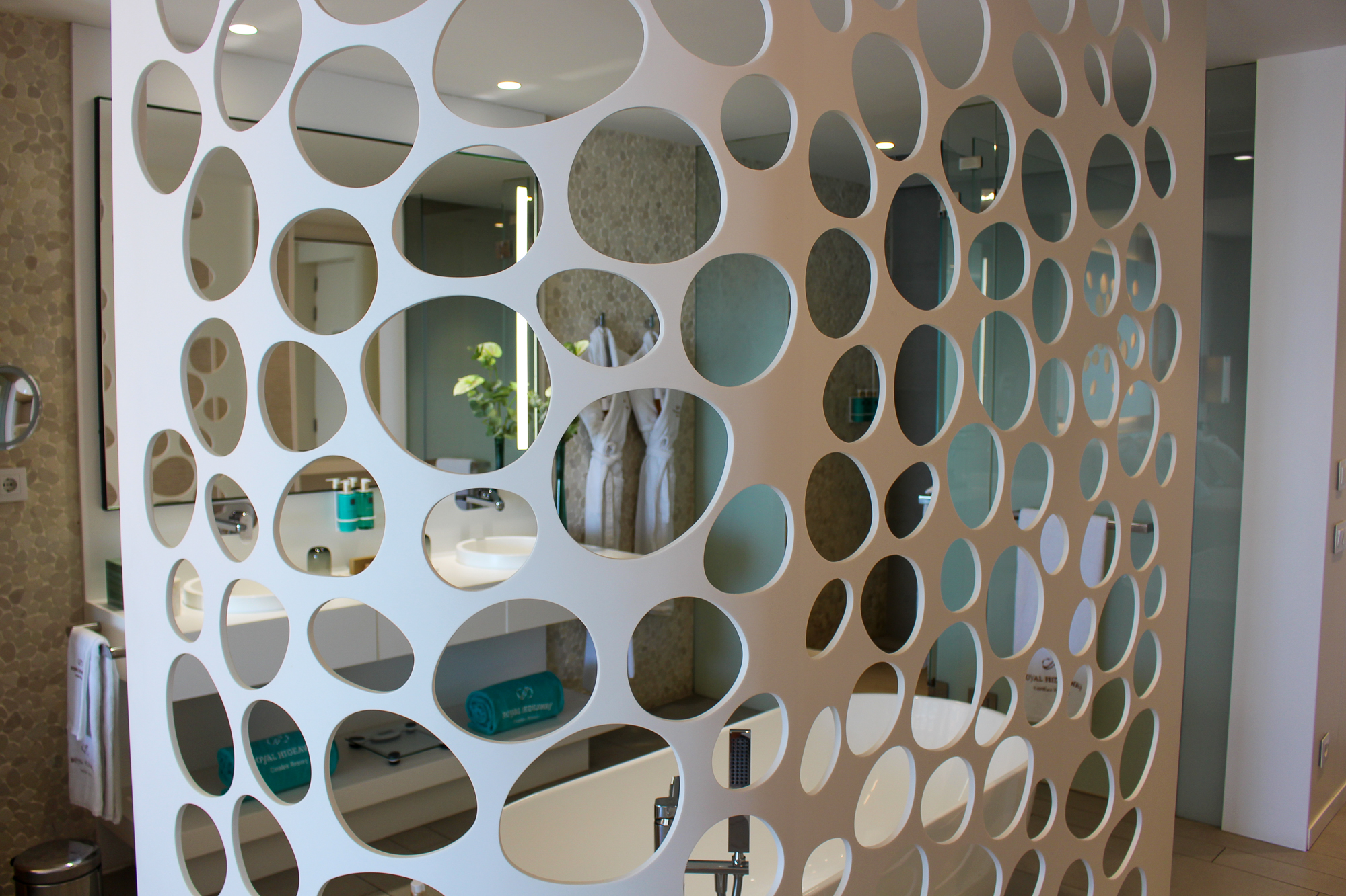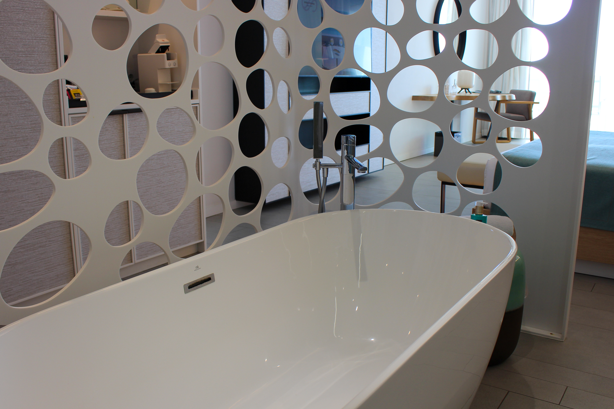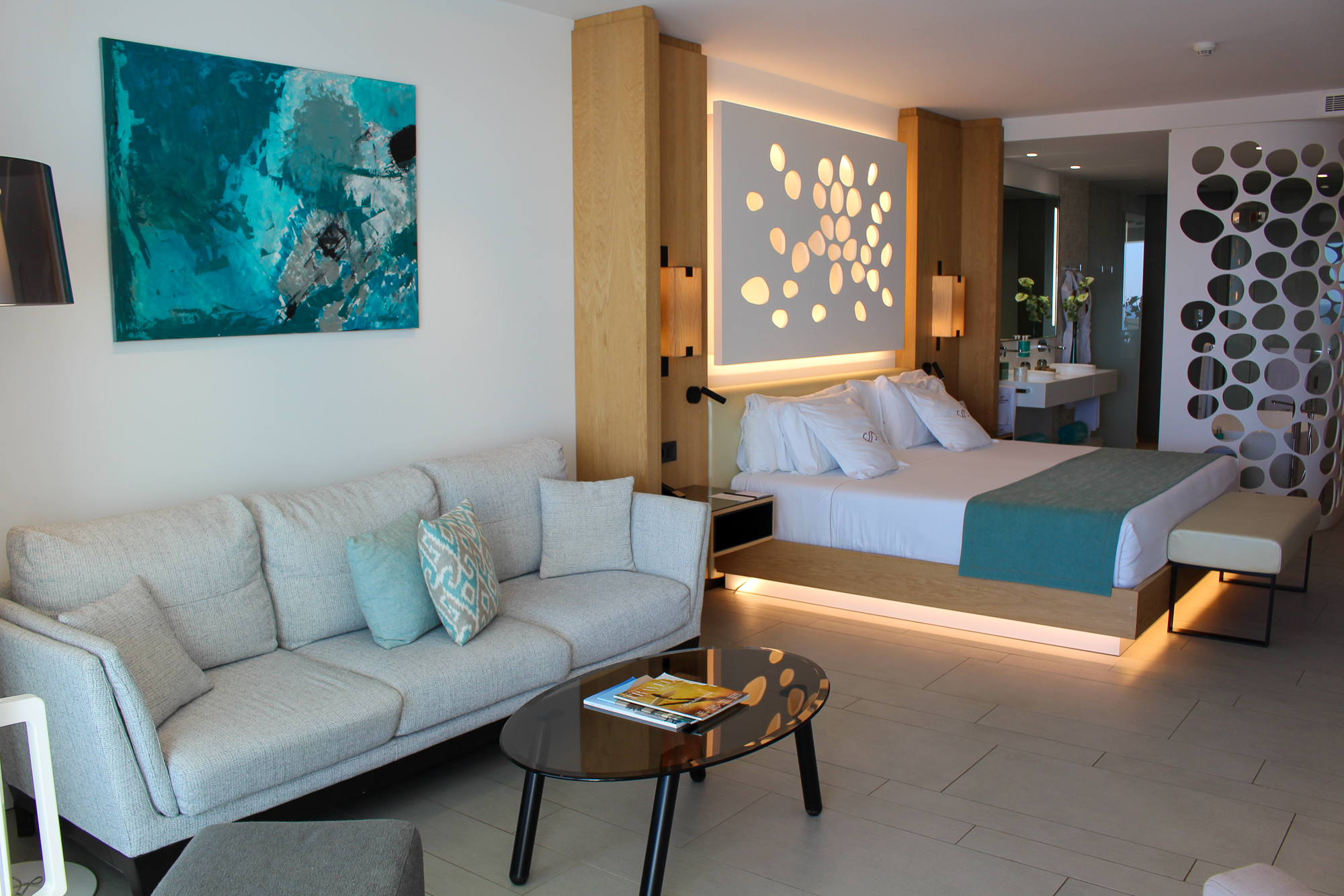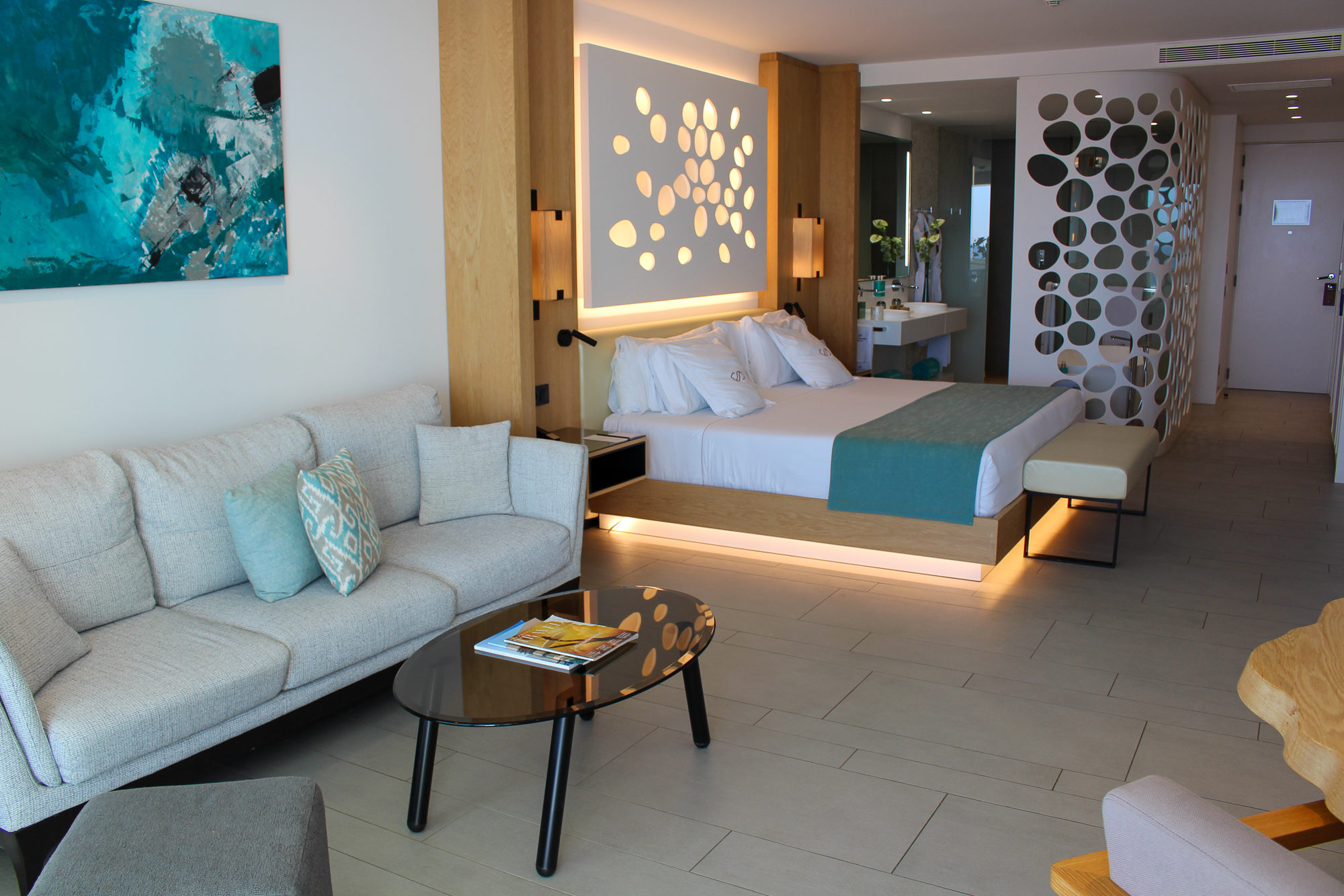 Alle gebruikte materialen en meubels zijn van uitzonderlijk hoge kwaliteit; de suite is licht en de sfeerverlichting zorgt ’s avonds voor een warme, gezellige ambiance.