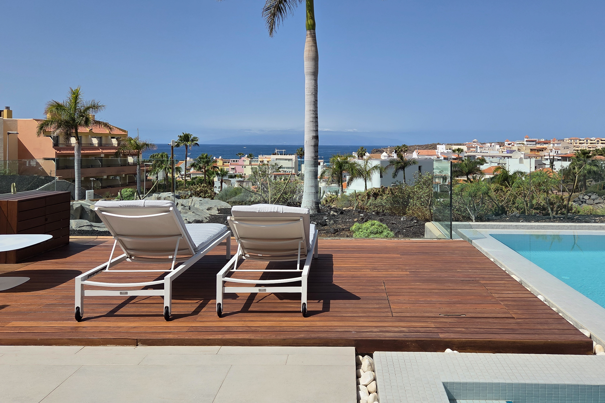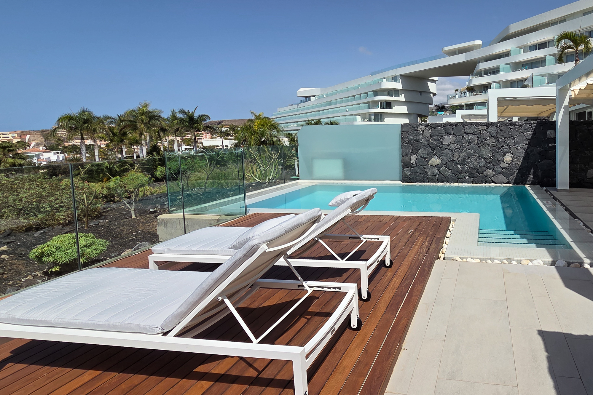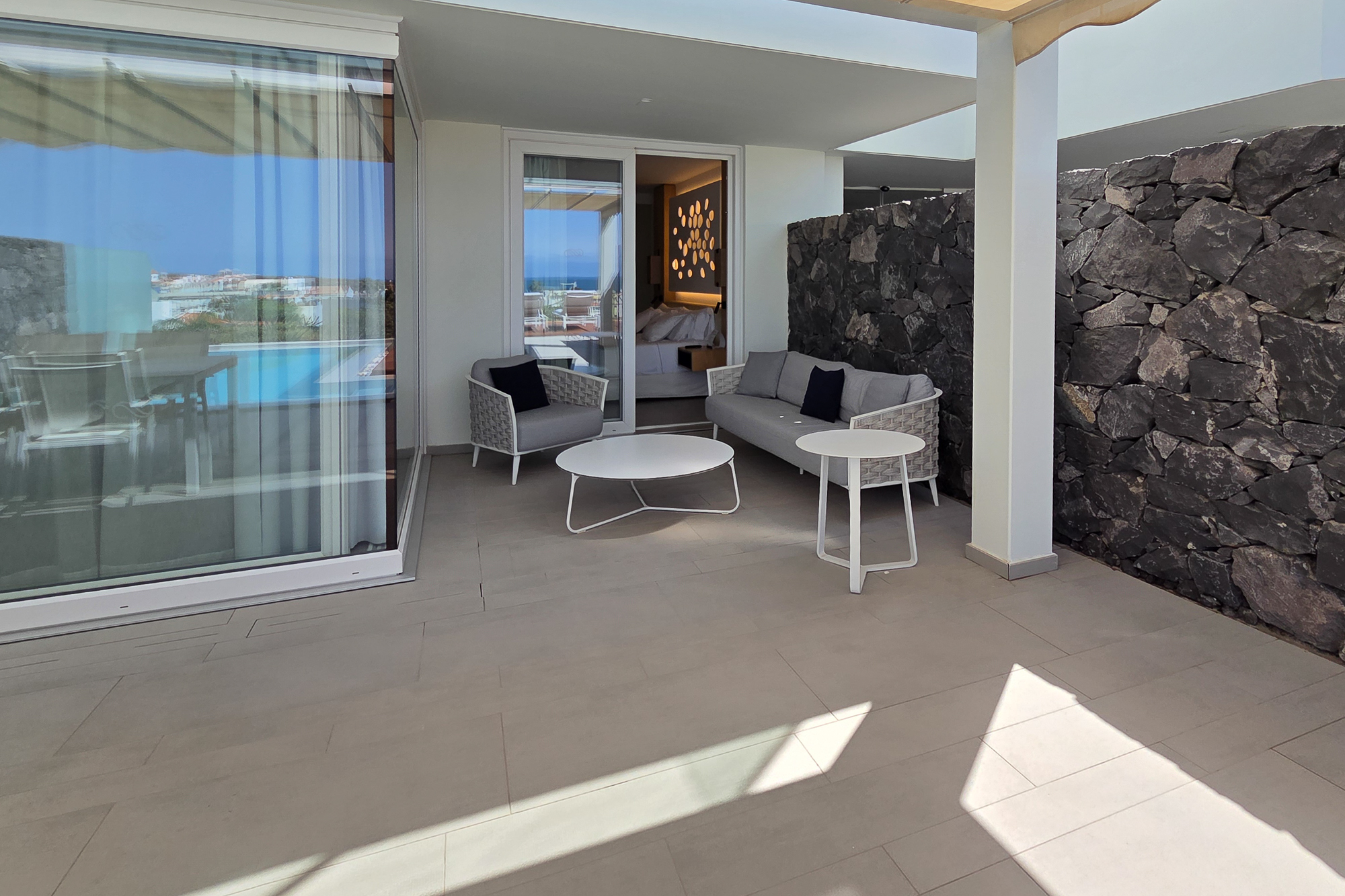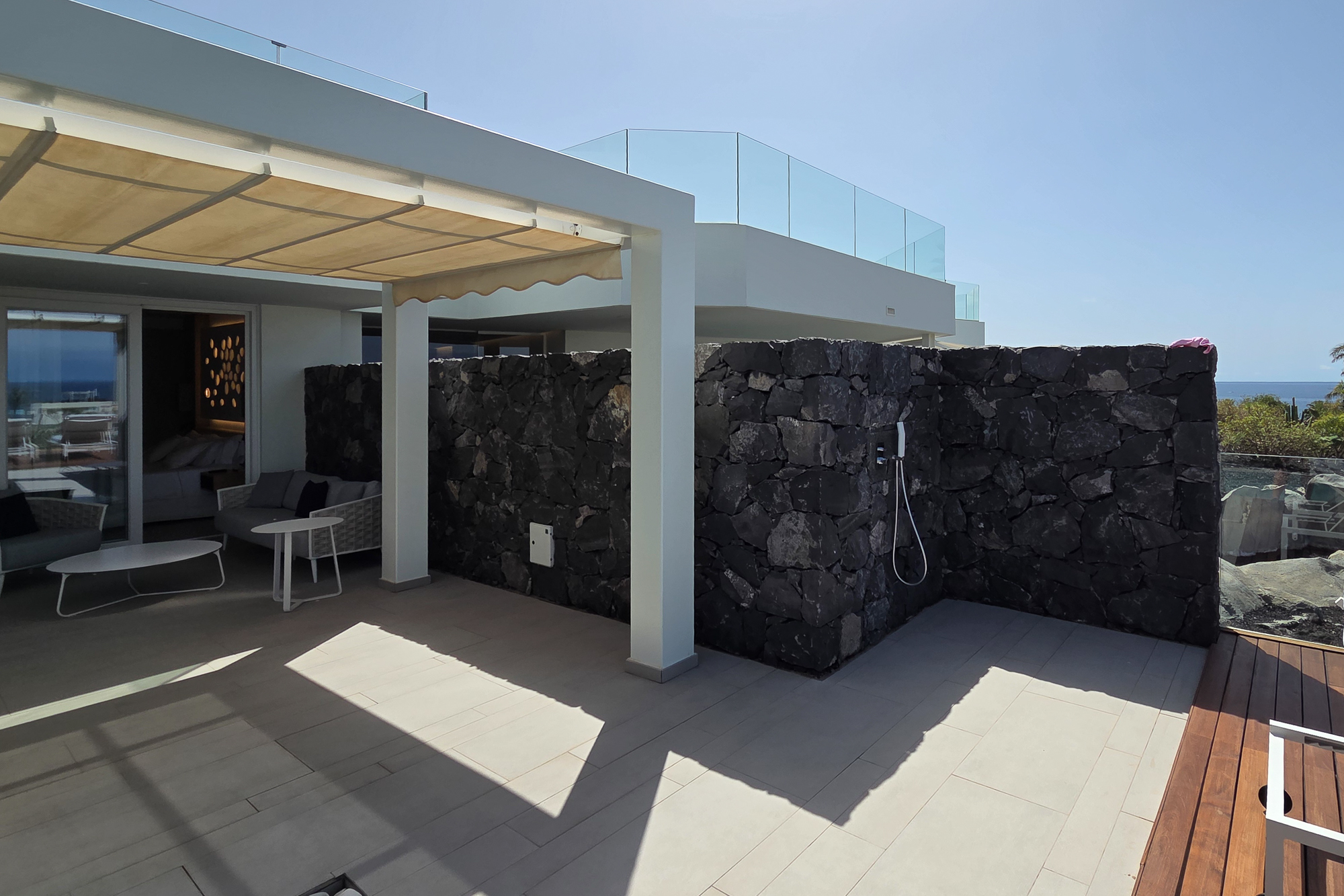 Outdoors, the terrace is designed as a true extension of the home, combining lounging and dining areas with a private pool, creating an intimate setting for relaxation and year-round enjoyment of Tenerife’s climate.