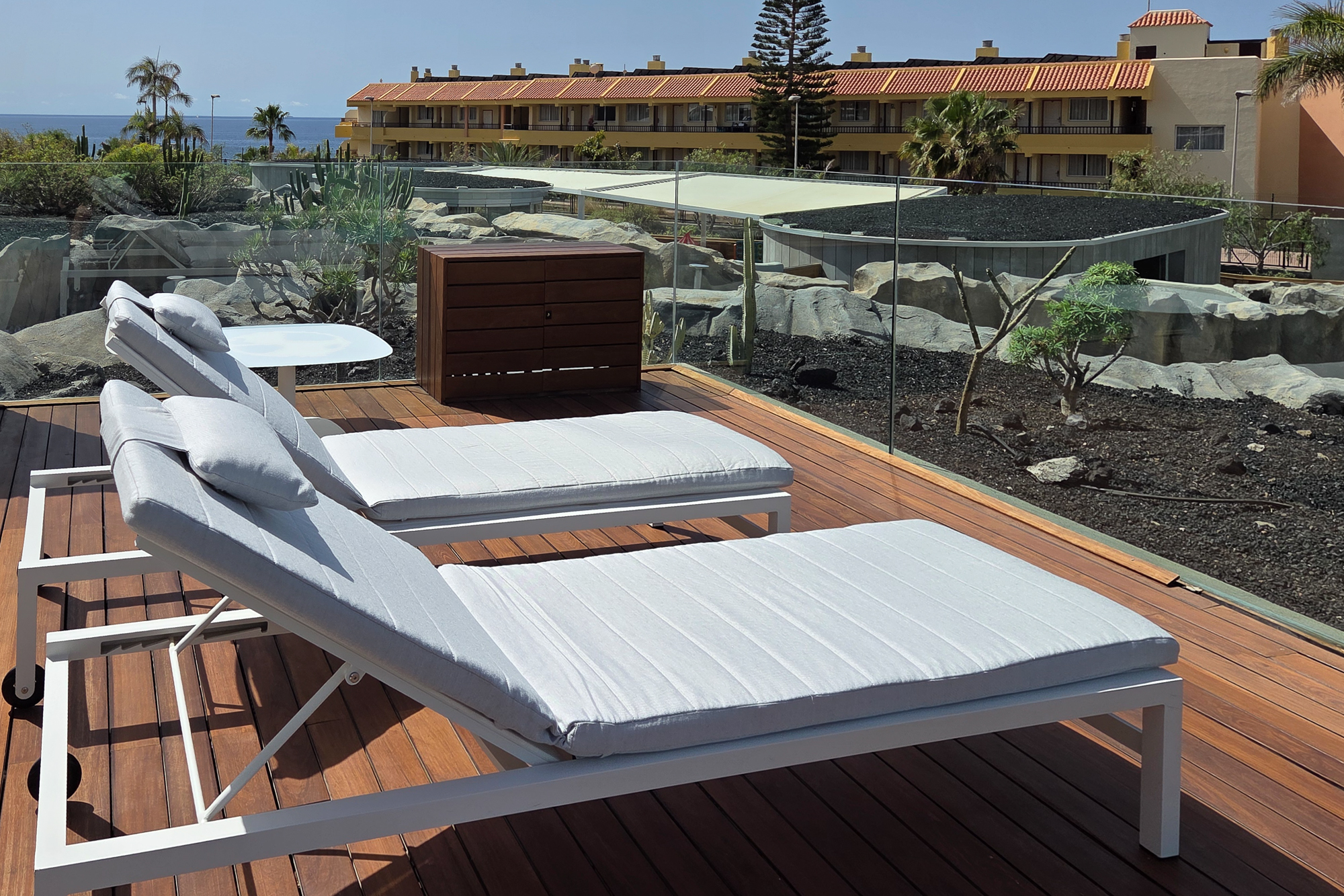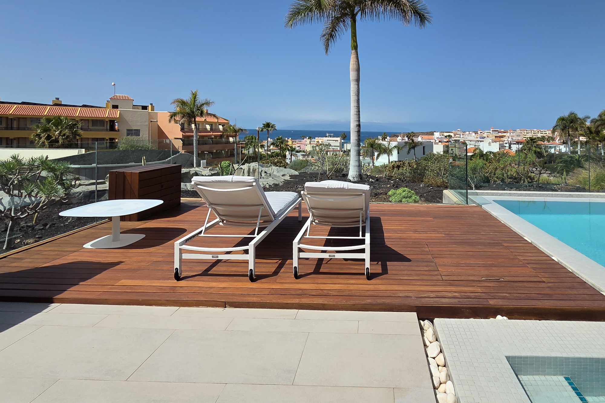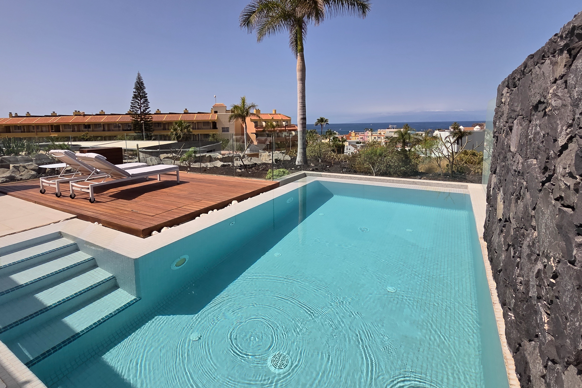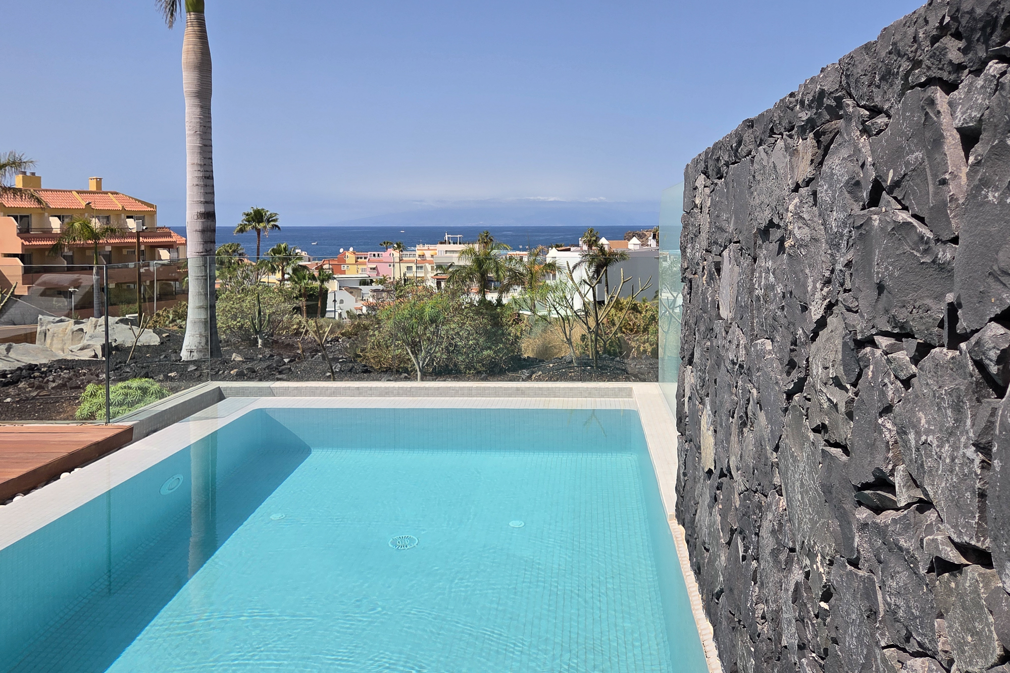 Outdoors, the terrace is designed as a true extension of the home, combining lounging and dining areas with a private pool, creating an intimate setting for relaxation and year-round enjoyment of Tenerife’s climate.
