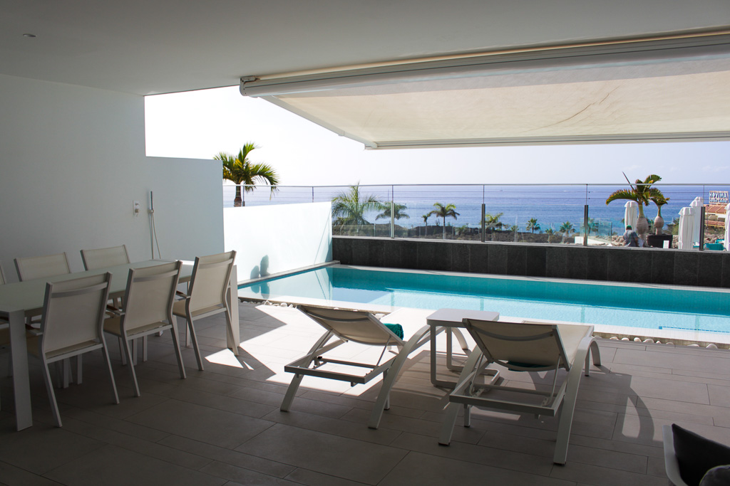The apartment boasts a sunny, spacious terrace with a private pool and panoramic views of the resort and the ocean—an ideal spot to unwind and enjoy the scenery. A second terrace facing the mountains provides a shaded retreat, perfect for a morning coffee or a relaxing afternoon.