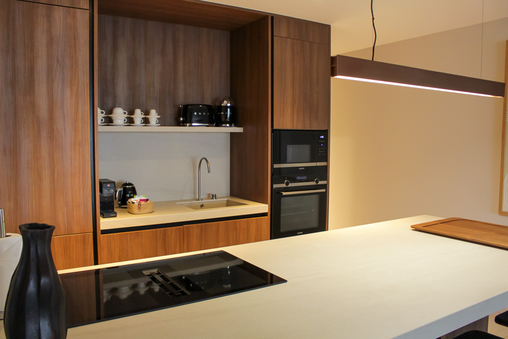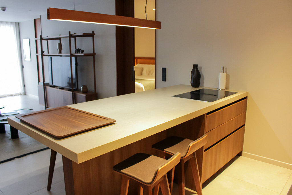 Step inside and feel the serenity. The open-plan living area flows effortlessly into a sleek, fully equipped kitchen with a contemporary island a place to gather, cook, and savour the island breeze drifting through the glass doors. Light, natural materials, and refined finishes create an atmosphere of quiet sophistication.
