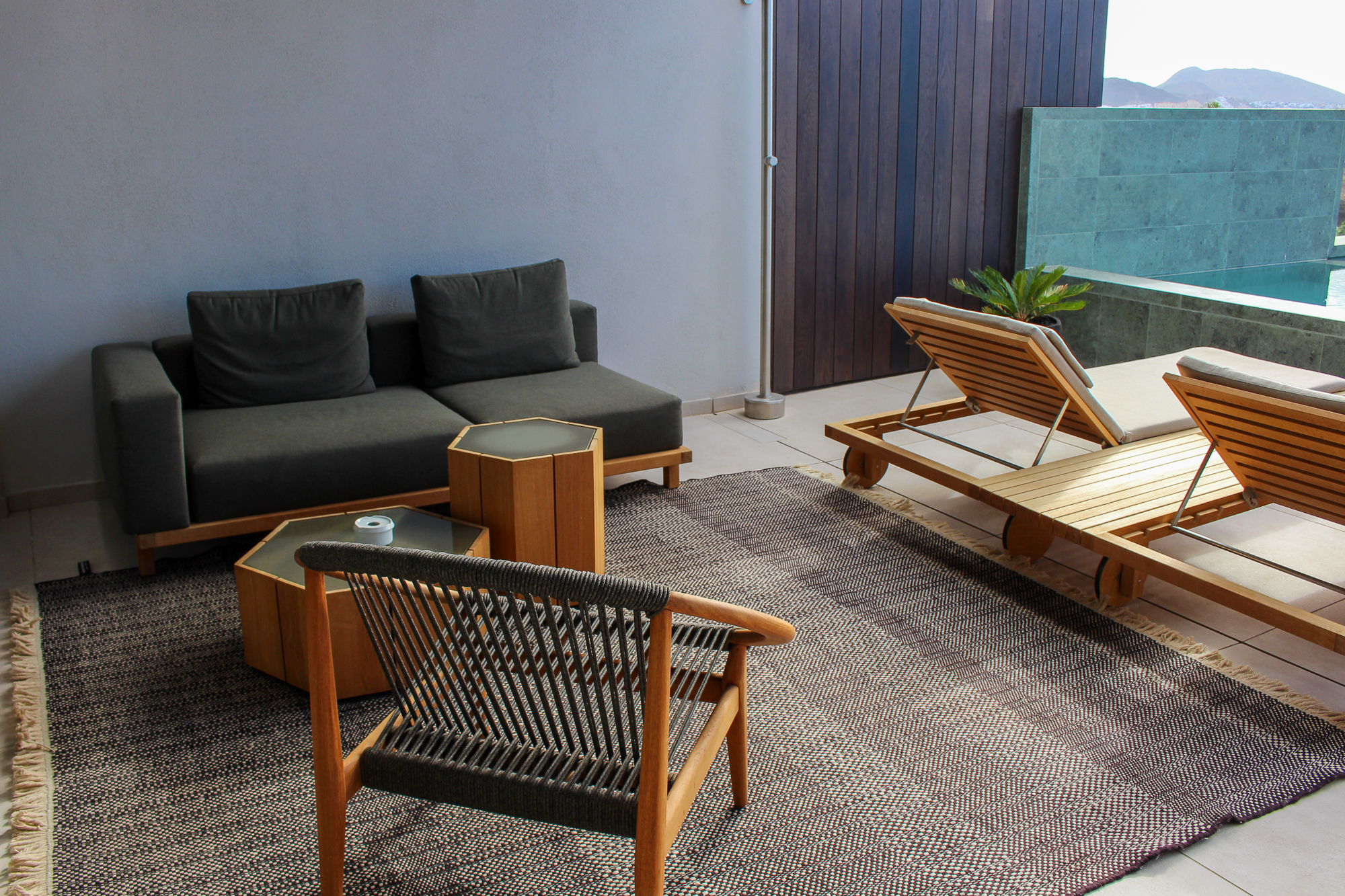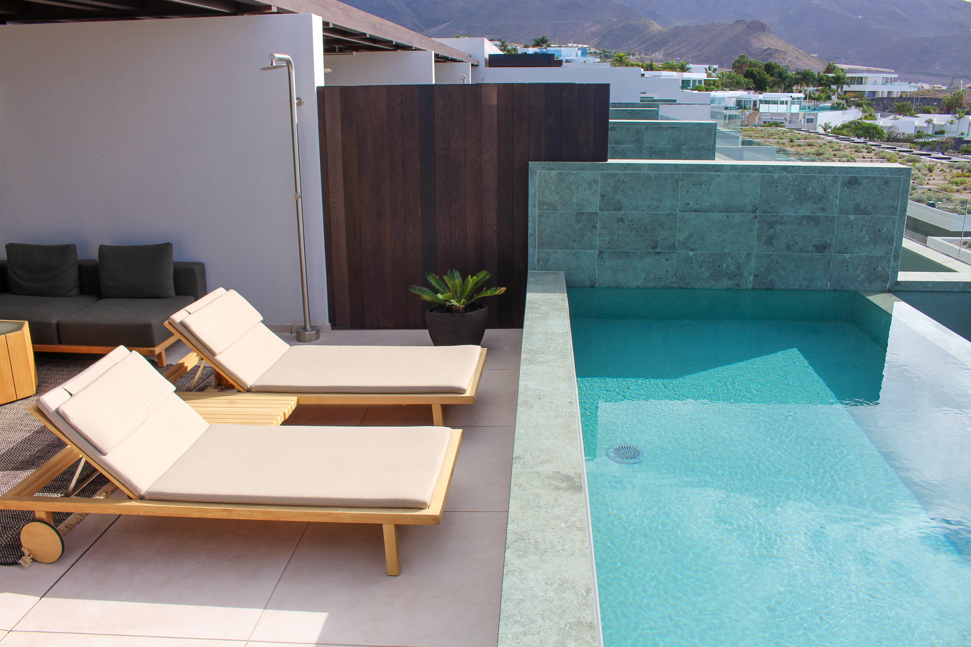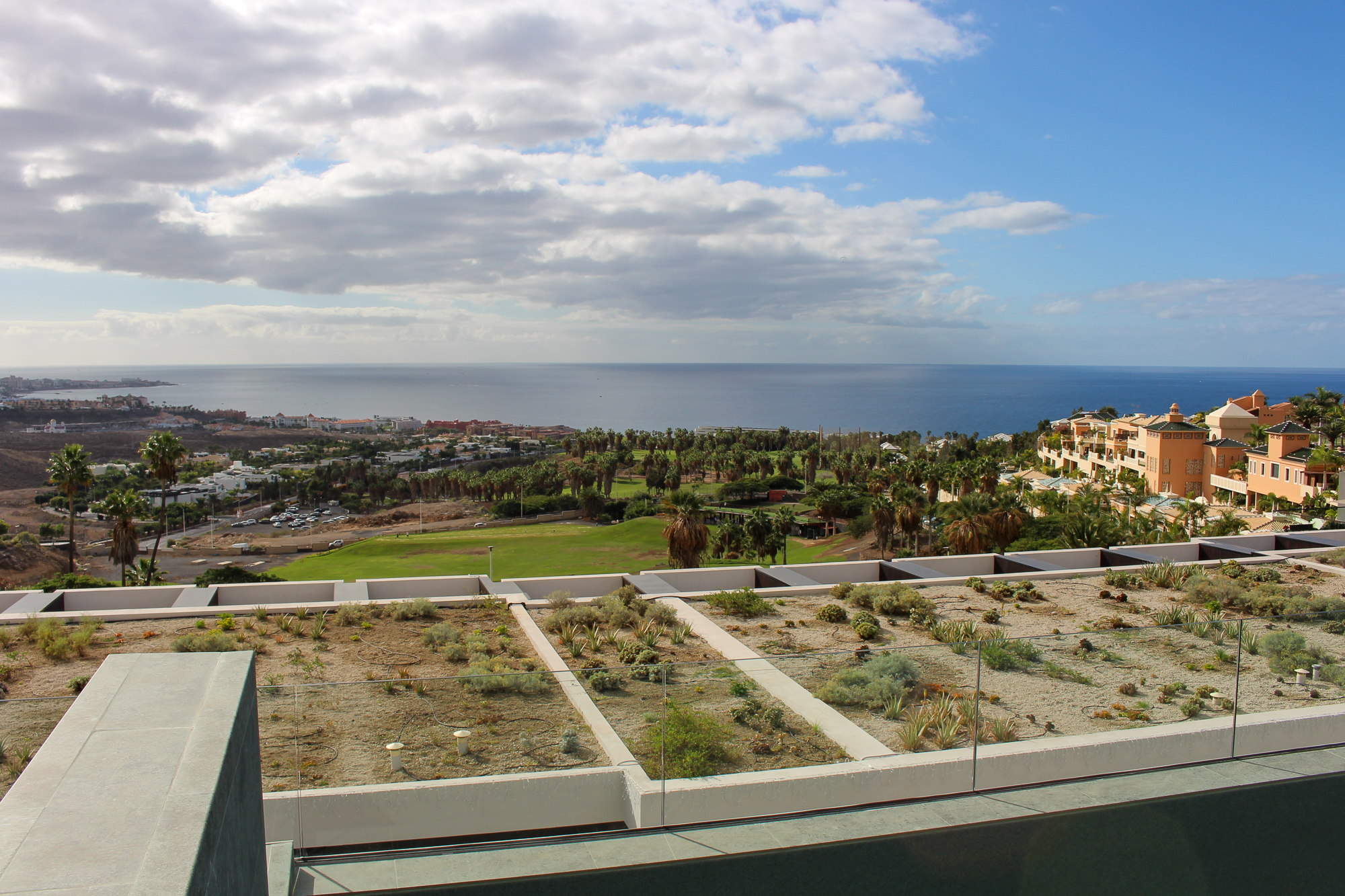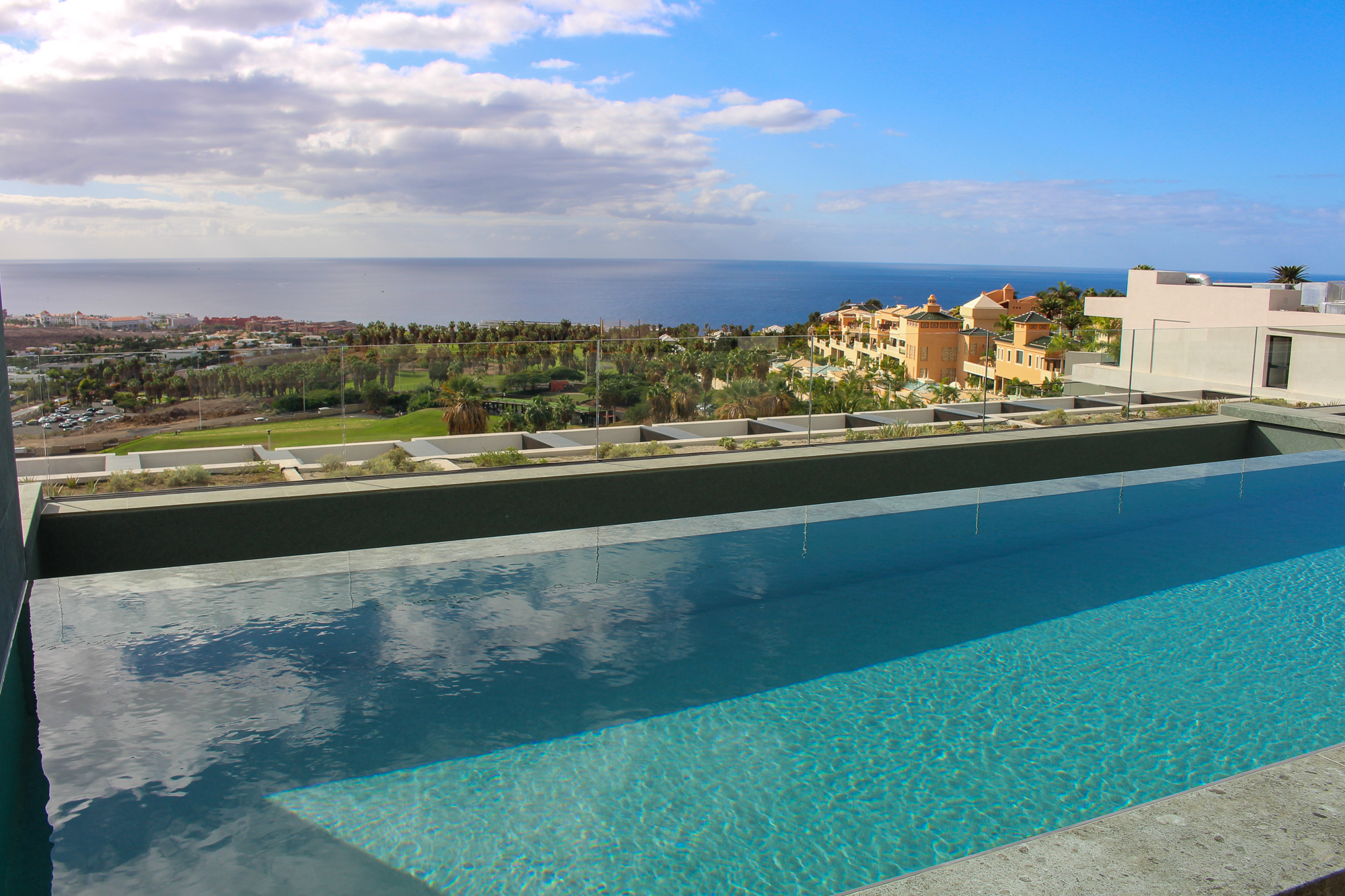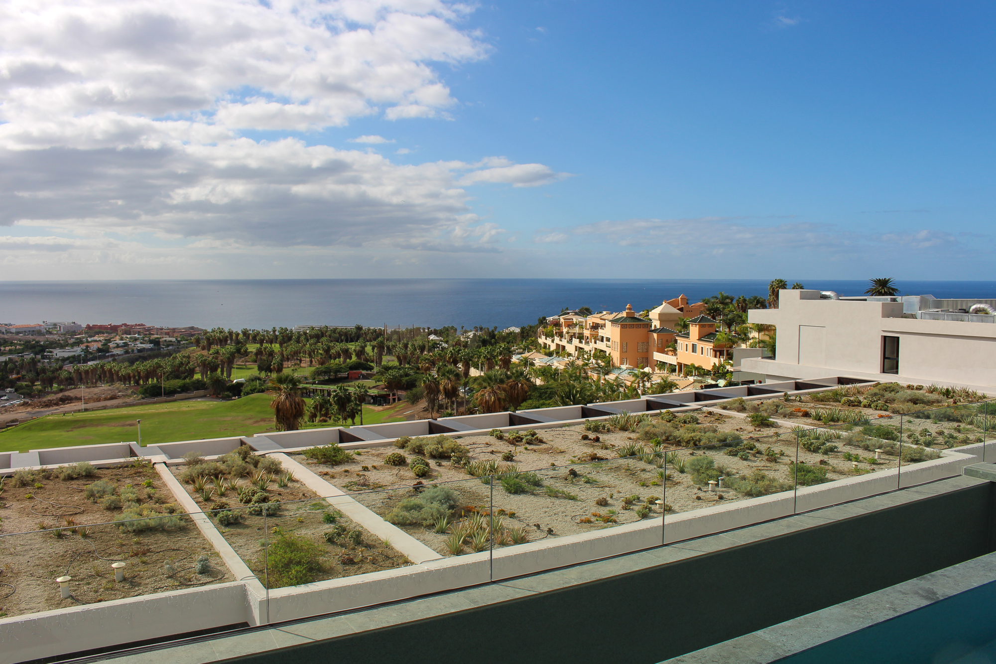A large and sunny terrace with a private swimming pool provides breathtaking panoramic views over the rooftop gardens, the golf course, and the Atlantic Ocean, creating a true sense of space, light, and tranquility.