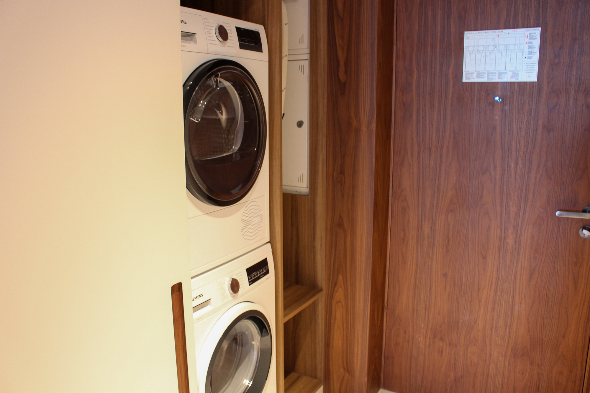 All rooms are fitted with individual built-in air conditioning for optimal comfort throughout the year. At the entrance, there is a utility cabinet with a washing machine and dryer, as well as an external storage room for personal belongings.