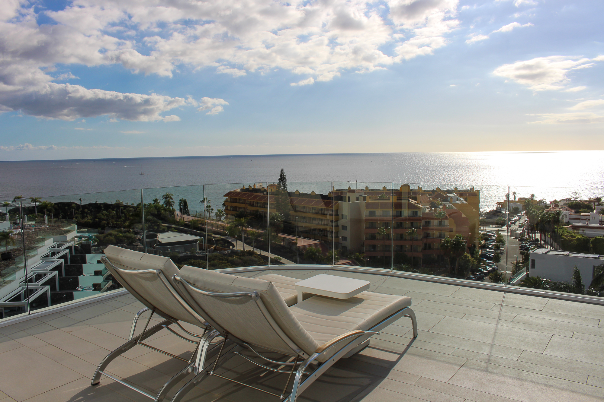 This refined corner Junior Suite is located on the 5th floor of the exclusive 5* Grand Luxury Royal Hideaway Corales Beach, an adults-only resort set beside the picturesque fishing village of La Caleta. Its elevated corner position ensures enhanced privacy, abundant natural light, and open views over the surroundings.