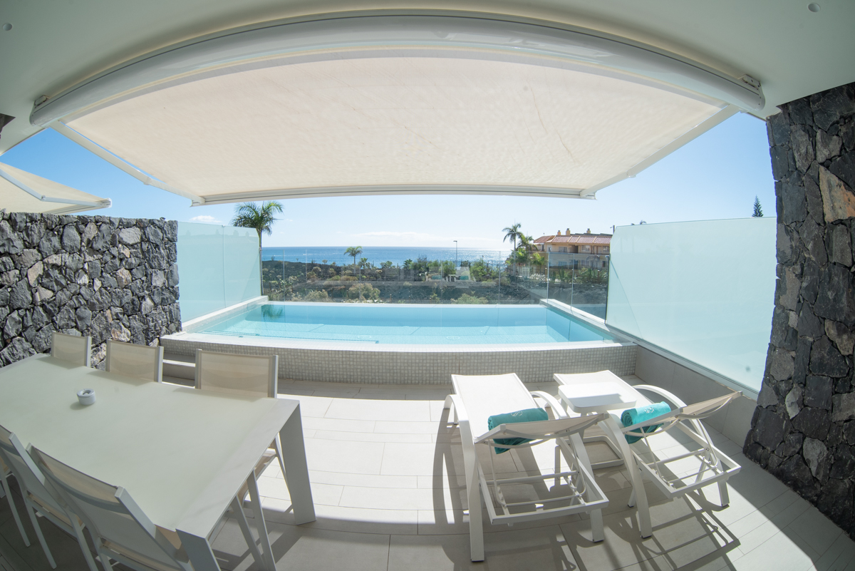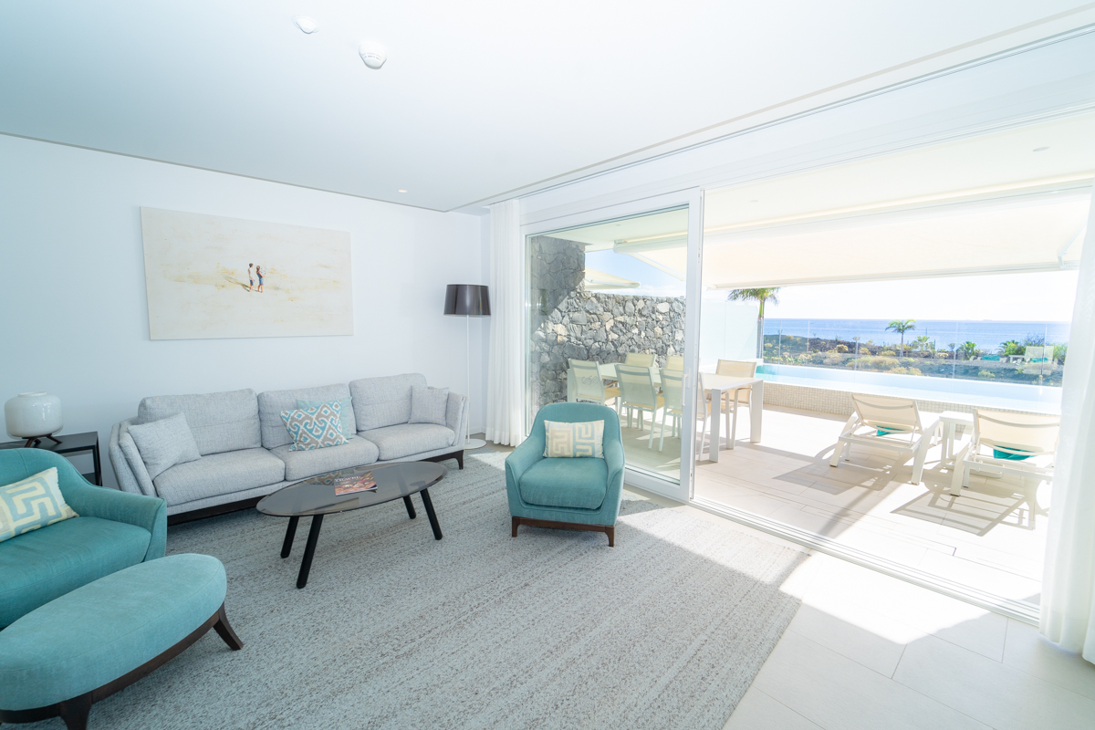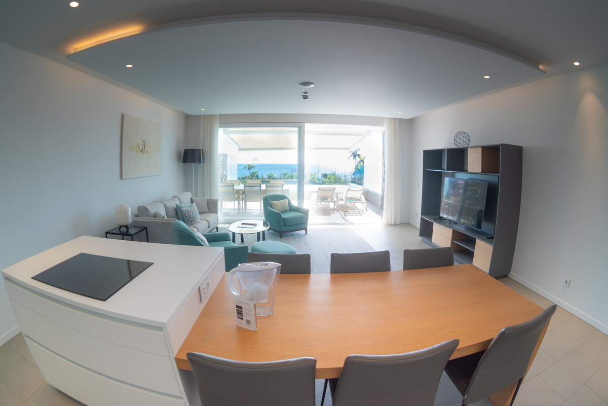A beautiful sunny terrace with a private pool and the impressive front view of the gardens and the Atlantic Ocean give this apartment an added dimension.