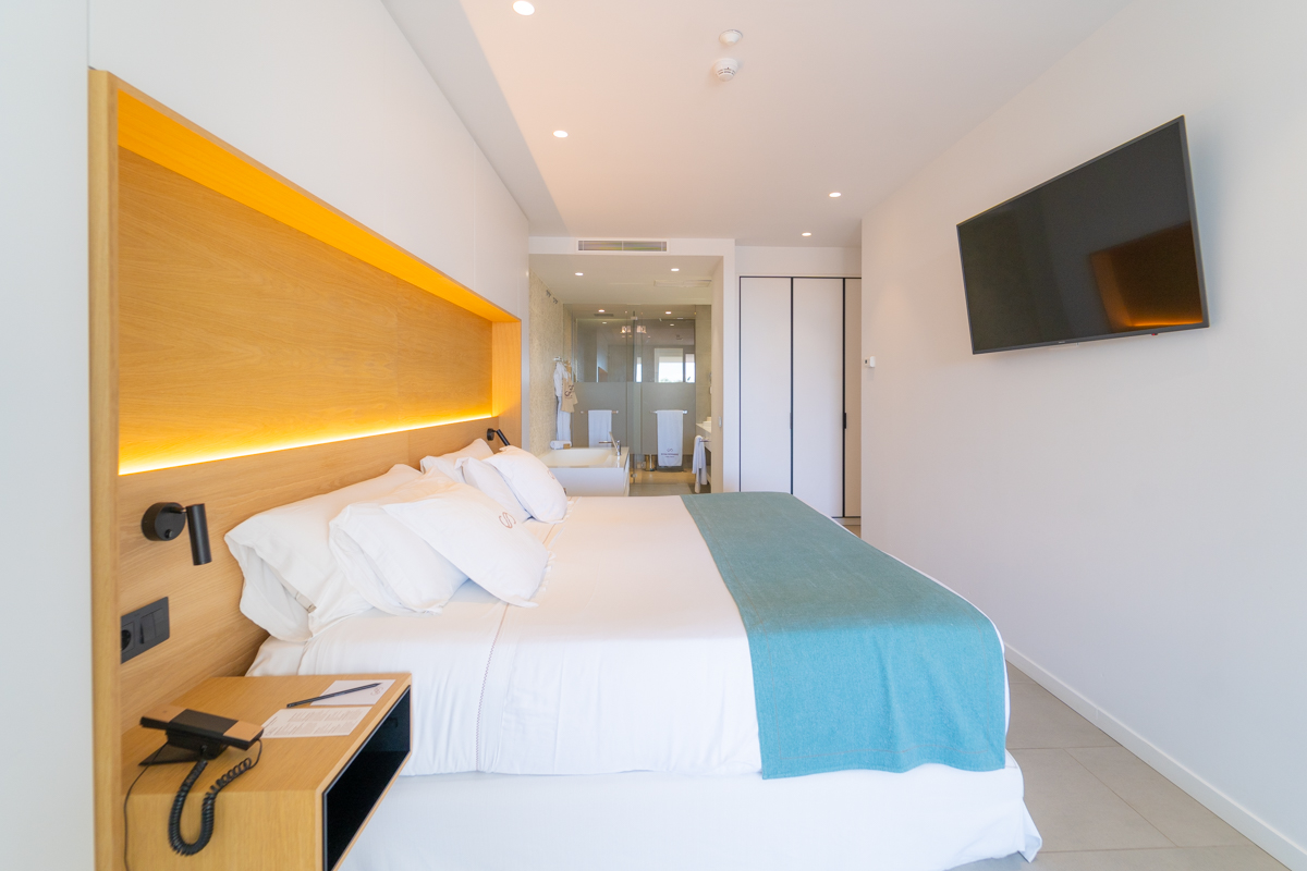 1 bedroom “en suite” with a KING SIZE bed, a KRION bathtub, a very spacious shower and bathroom separated by a large sandblasted screen. A large desk and a 49 “television complete the bedroom.