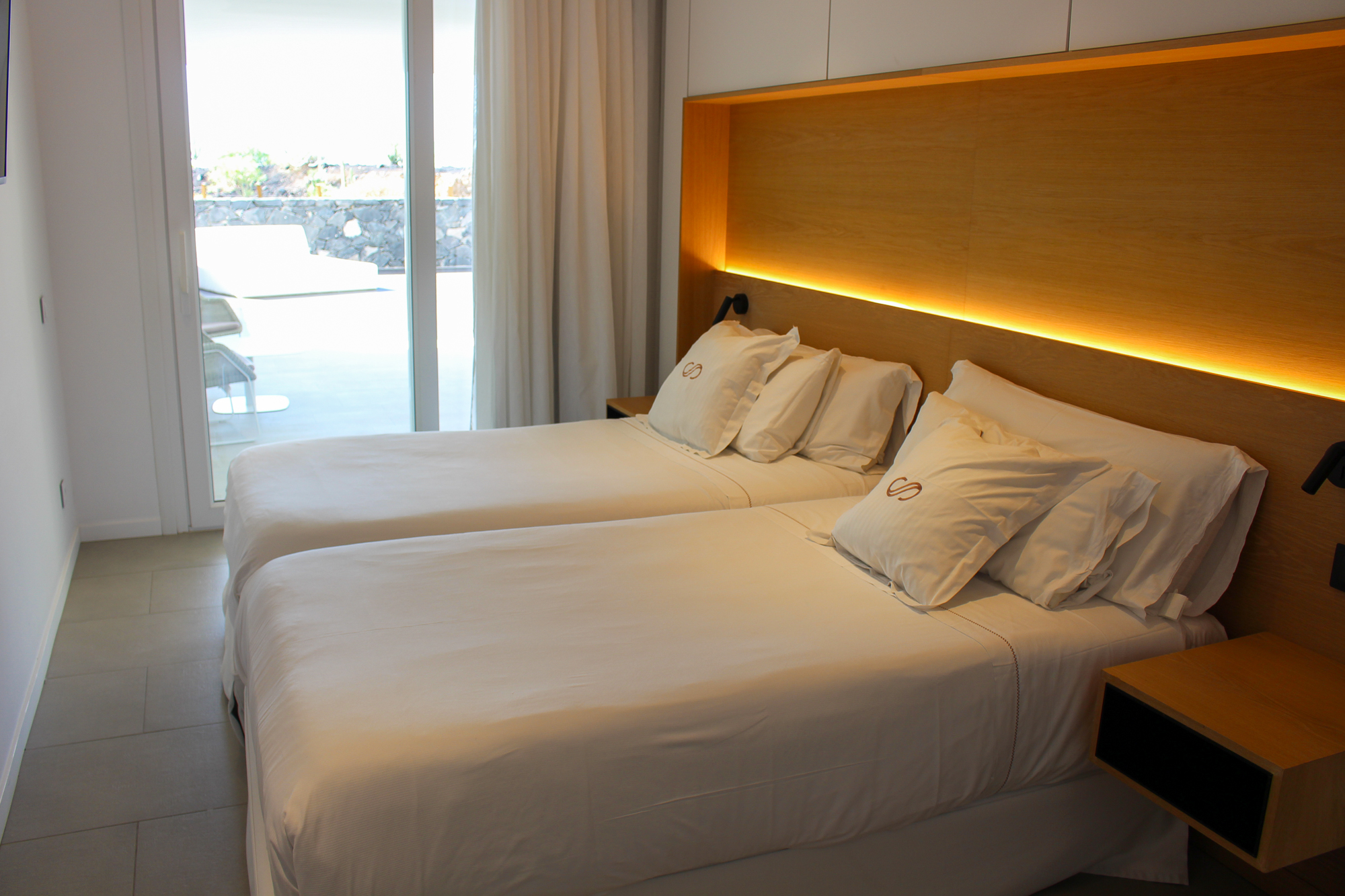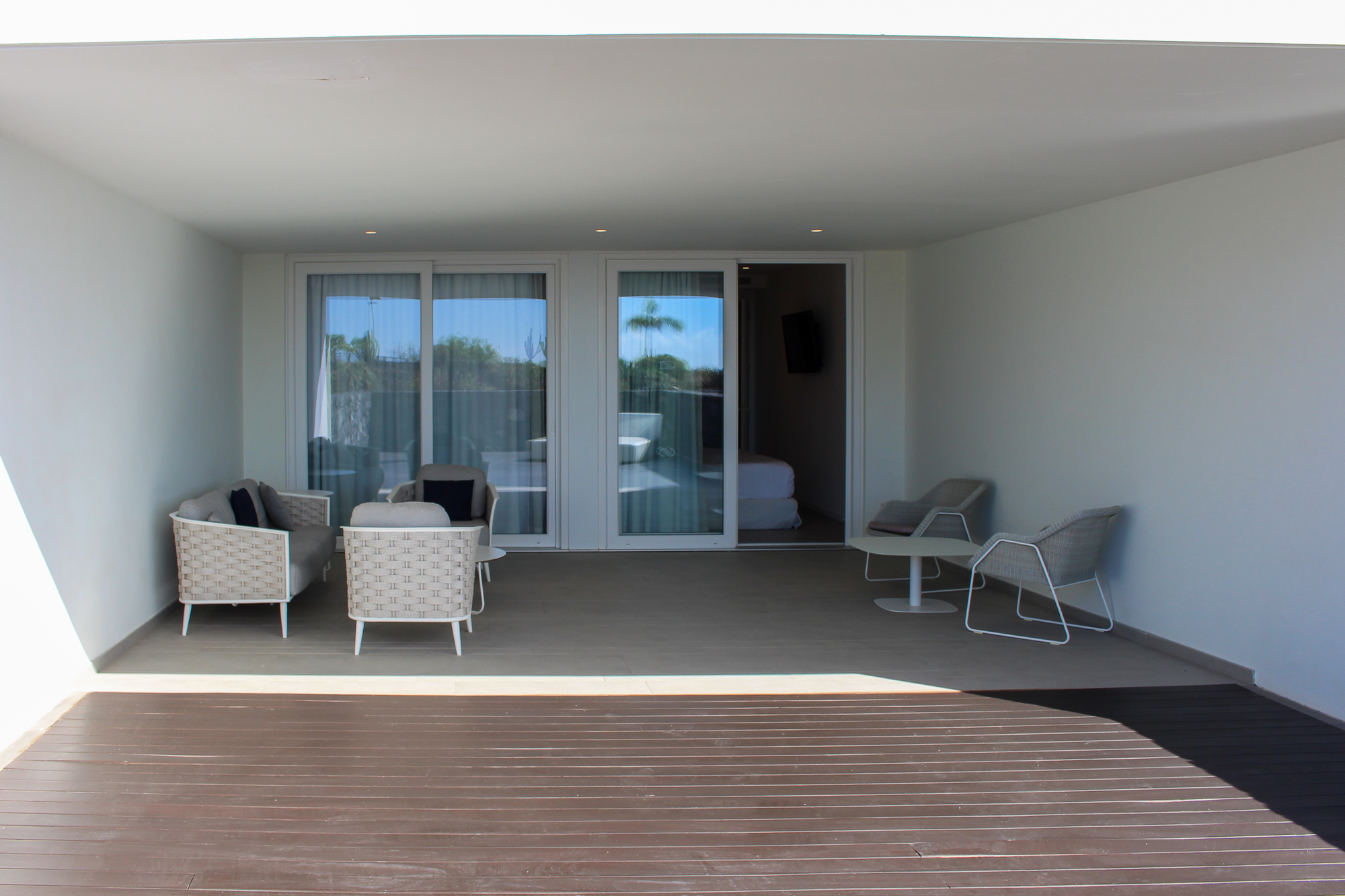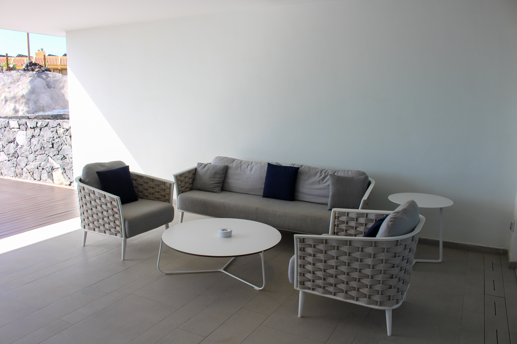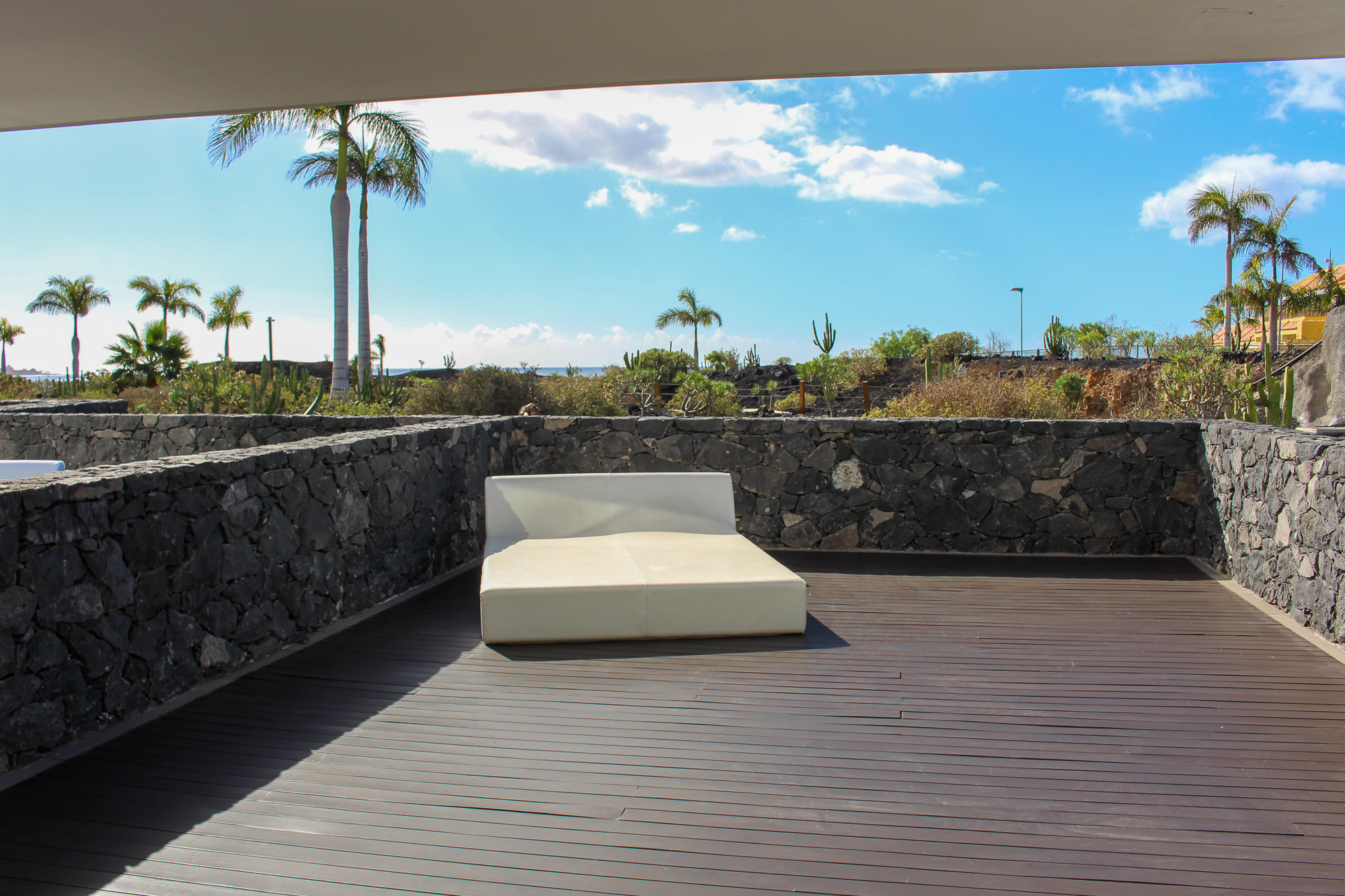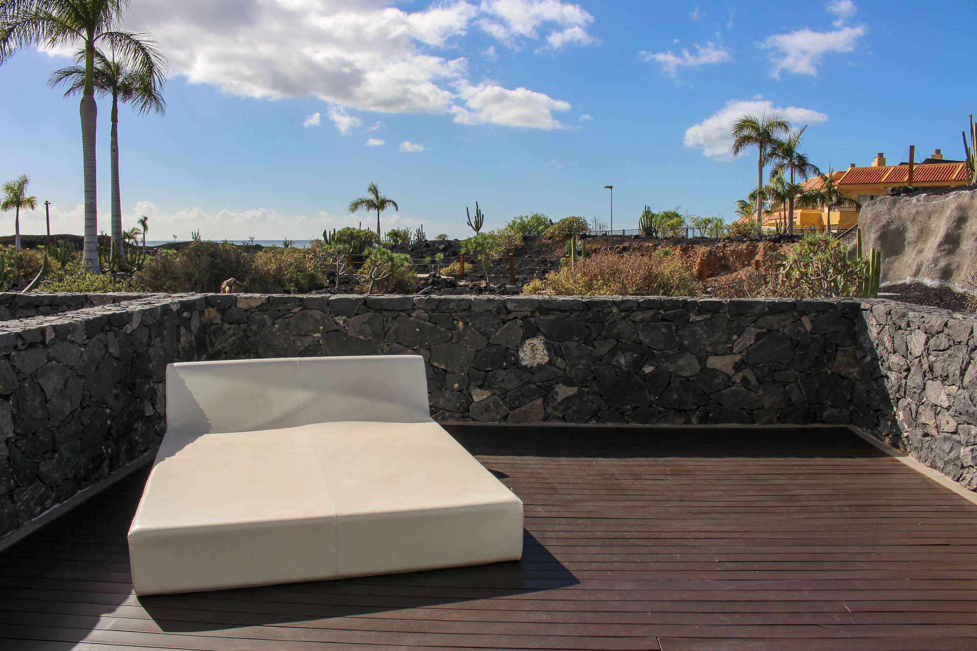 Both bedrooms are connected with a huge wooden terrace and some cosey furniture.