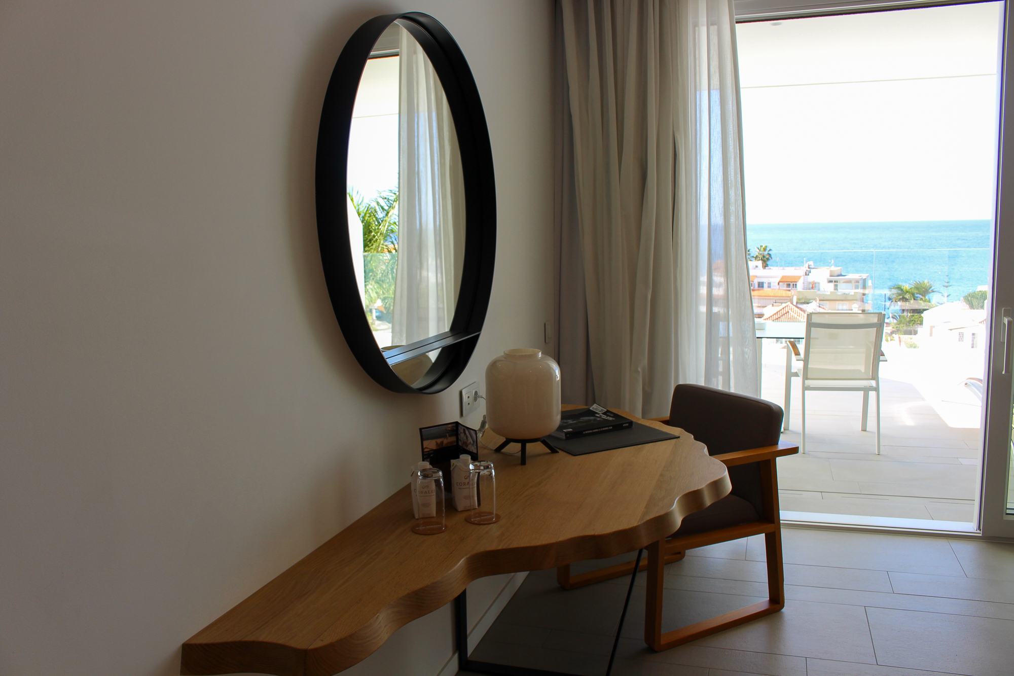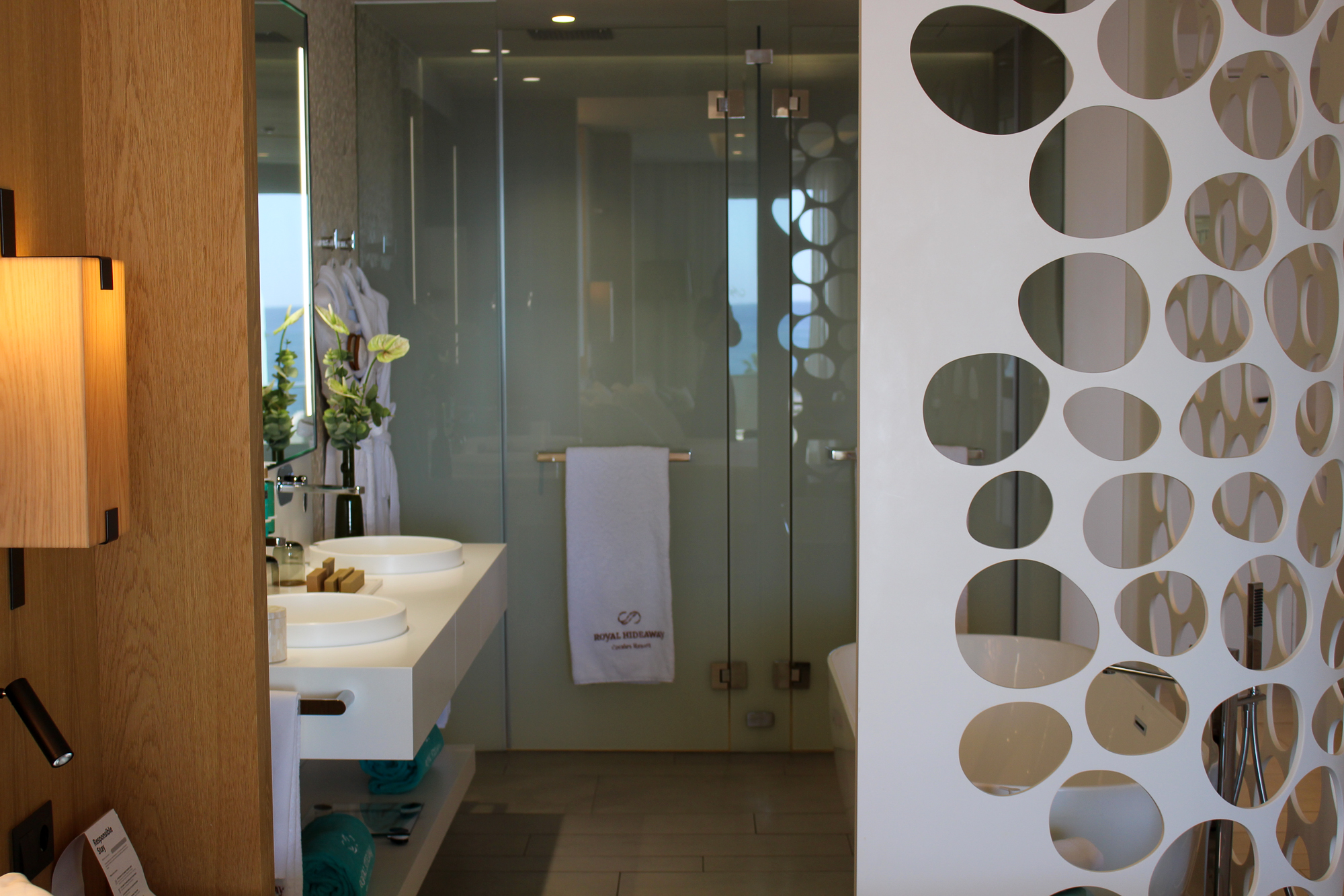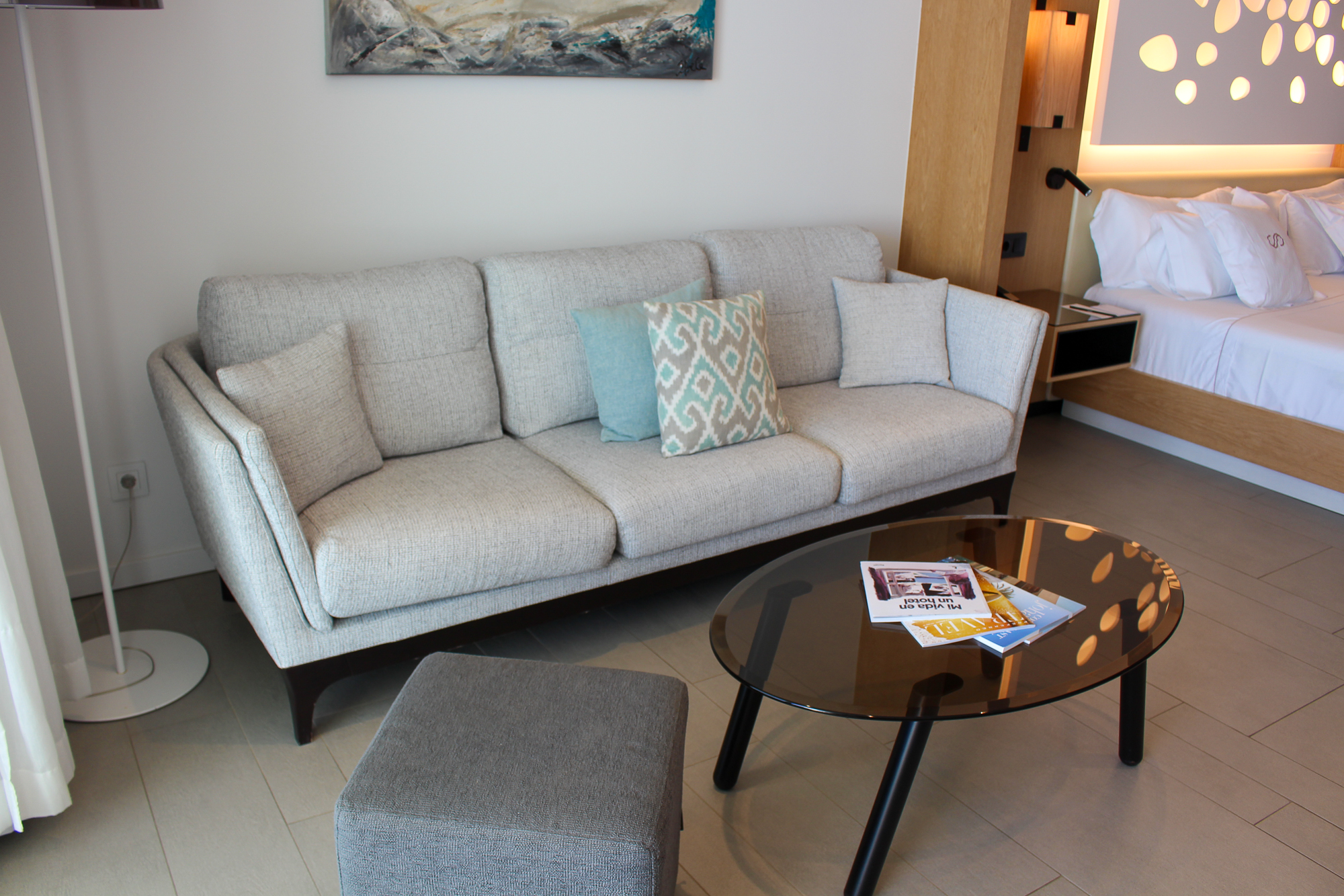 The suites have a large illuminated KING SIZE bed with a nice designed bed board and a very modern bathroom with double sink and bathtub from KRION. Separated rain shower and separate toilet.
