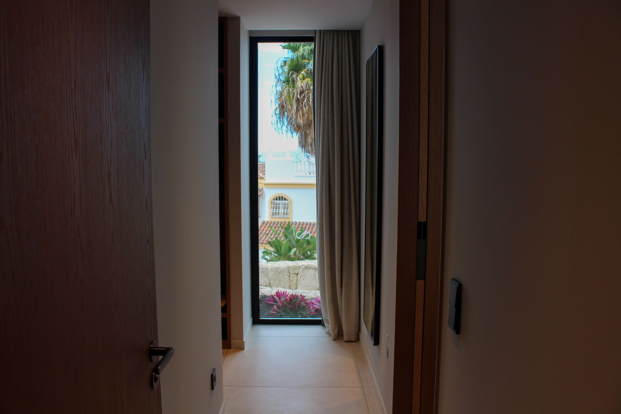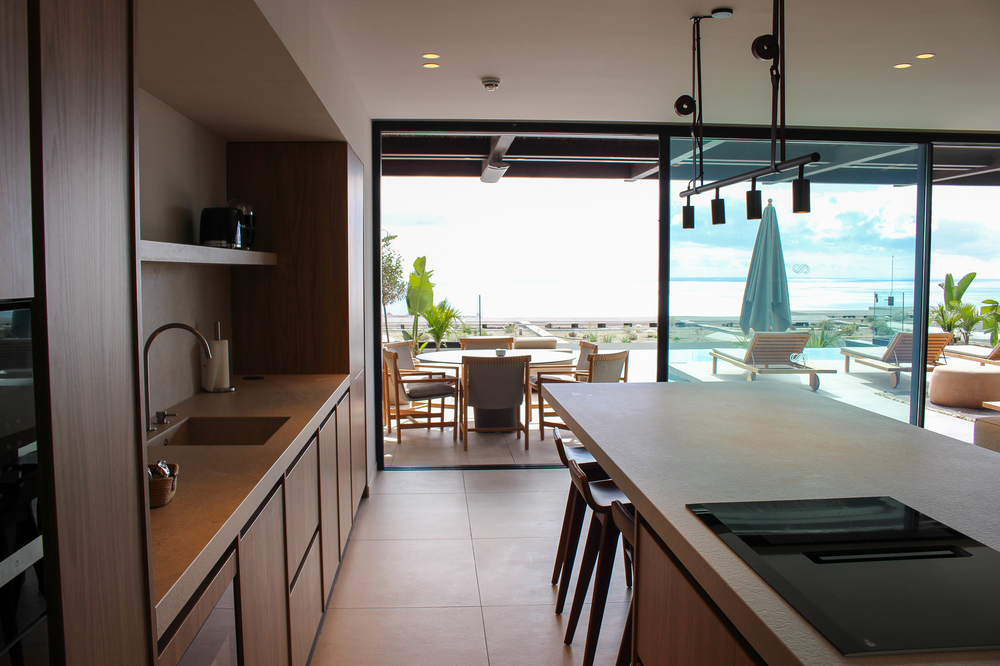 Inside, space flows effortlessly. The bright and spacious living room opens onto a modern kitchen with a sleek cooking island and dining area the perfect setting for relaxed breakfasts or dinners with friends as the sun sets over the Atlantic.
