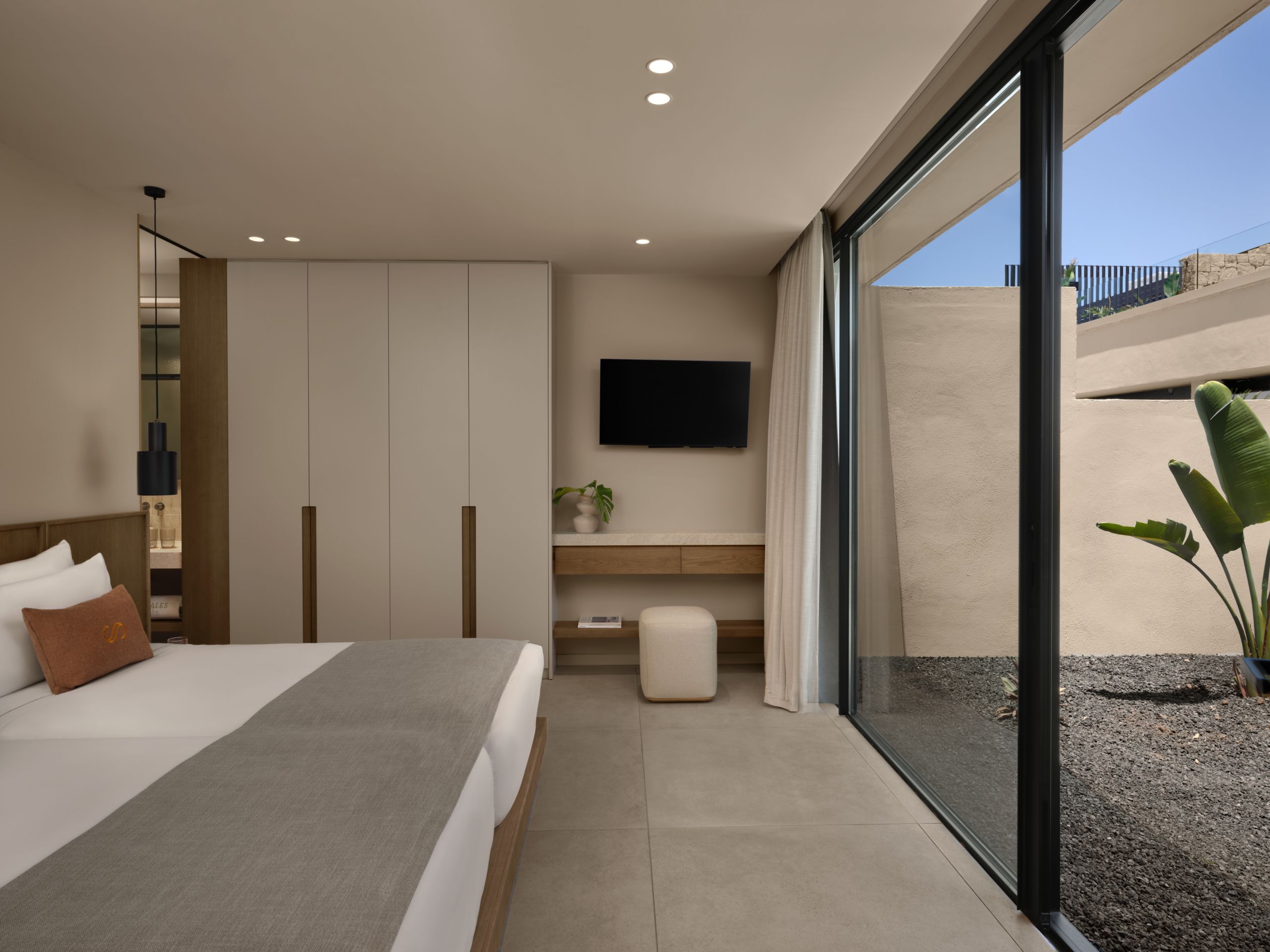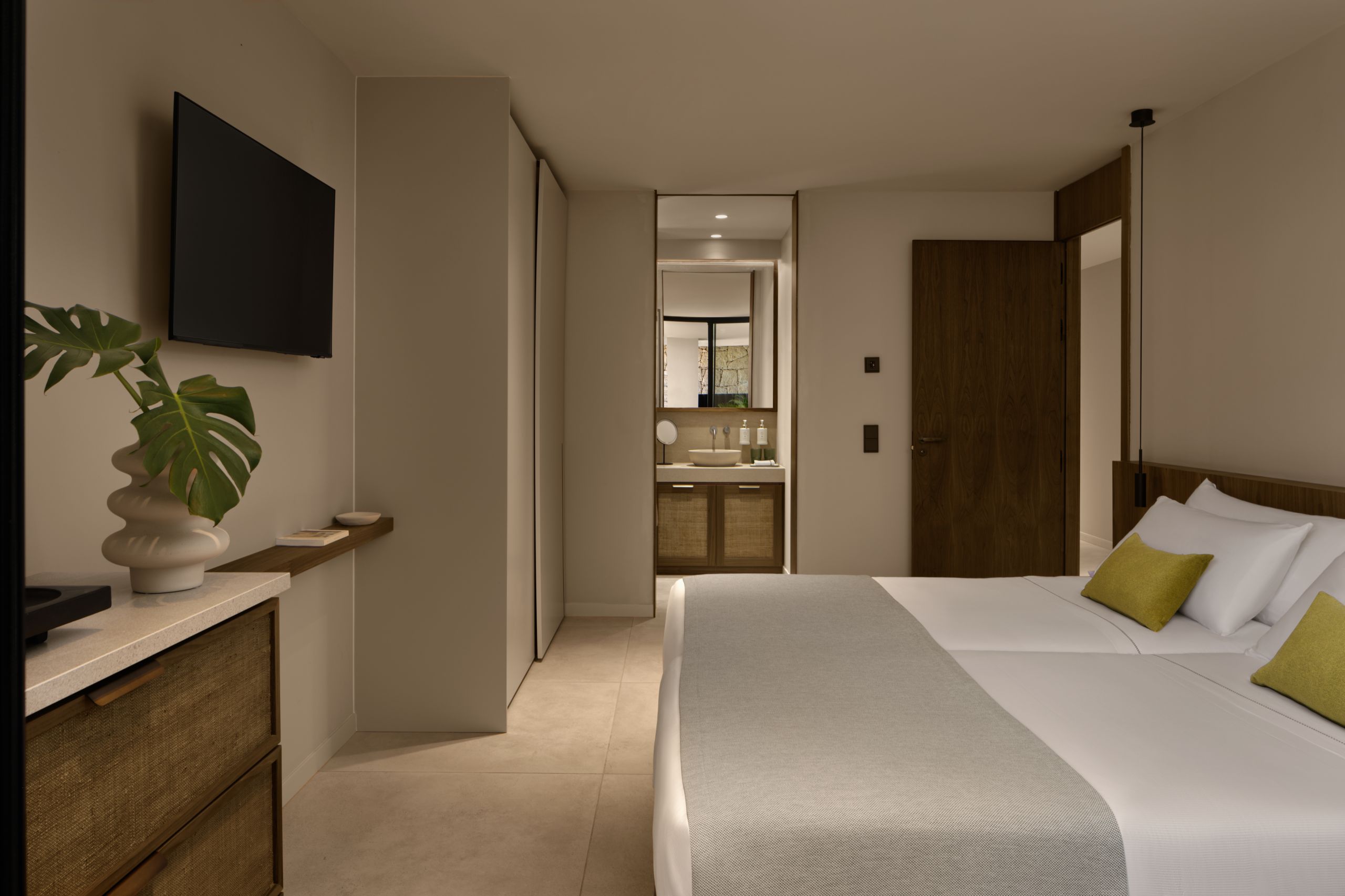 Word wakker bij de zachte gloed van het ochtendzonlicht dat door de vloer-tot-plafondramen naar binnen stroomt. Deze uitzonderlijke villa met twee slaapkamers, gelegen binnen het prestigieuze 5-sterren Gran Luxe Royal Hideaway Corales Villas, is meesterlijk ontworpen om tijdloze elegantie te combineren met modern comfort en moeiteloze functionaliteit.
