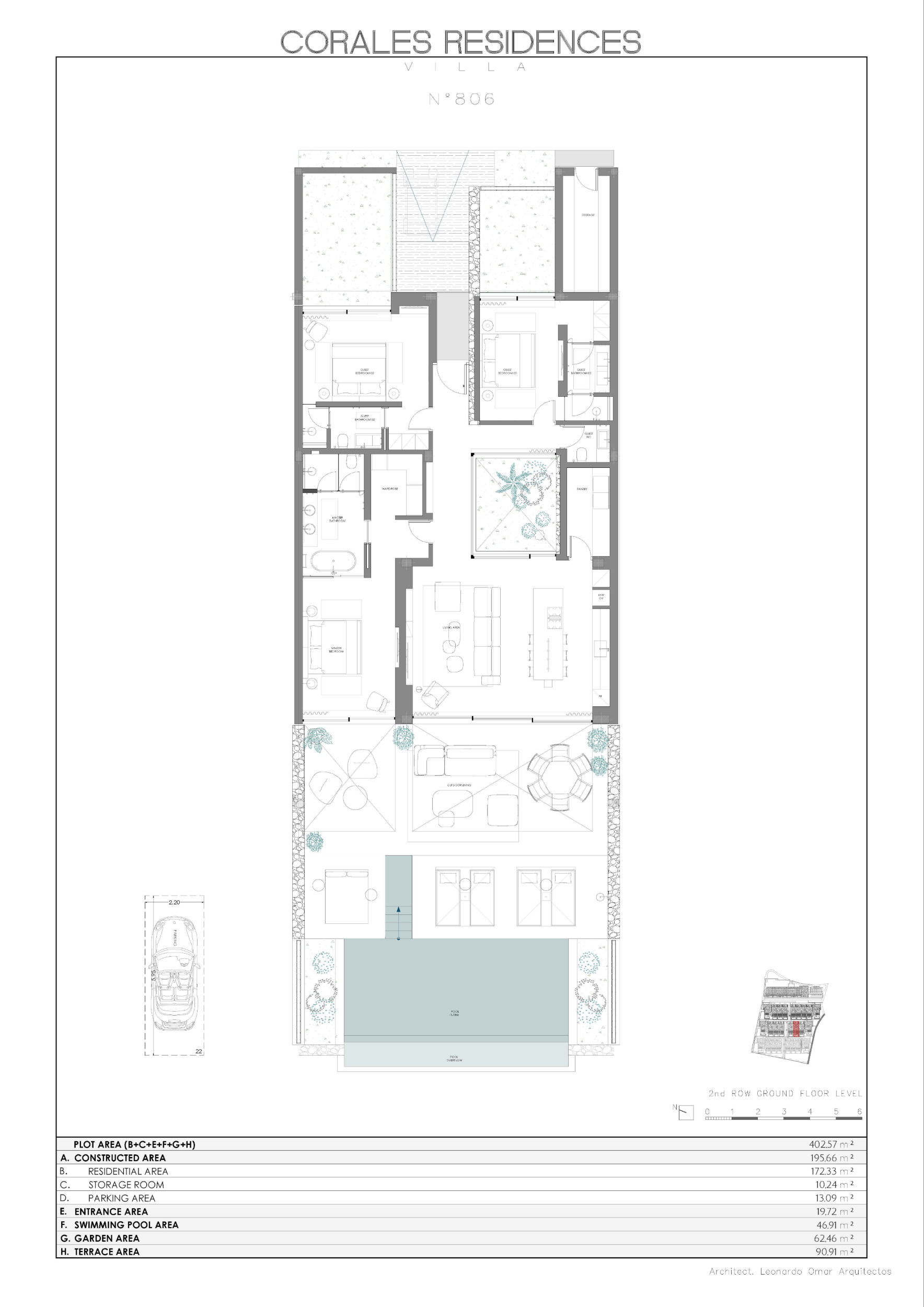 The outdoor living areas are ideal for relaxation, combining sunlit terraces, landscaped gardens, and a private swimming pool set in a peaceful, intimate environment. The interior patio enriches airflow and adds natural transparency throughout the home.