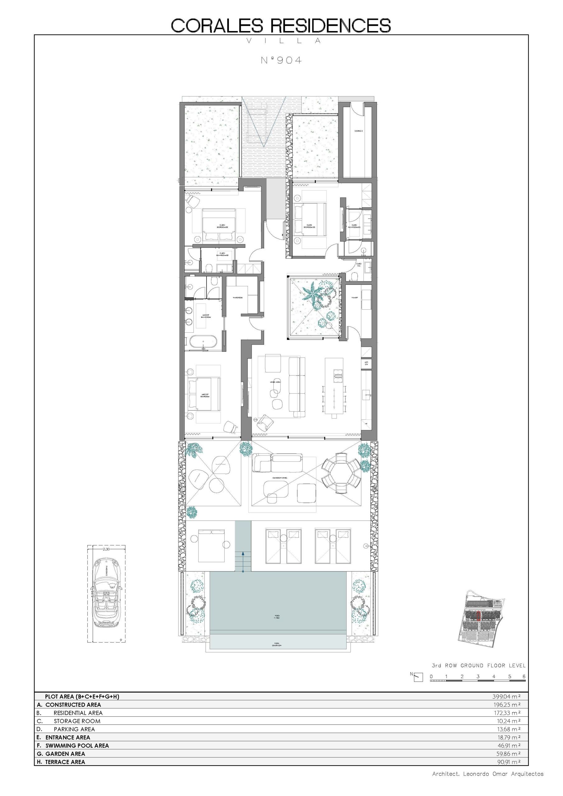 Each of the three bedrooms is complete with an ensuite bathroom and private outdoor access. Garden spaces enhance the intimacy of two suites, while the main bedroom offers direct entry to the terrace beside the private swimming pool, setting the tone for peaceful mornings and restful evenings.